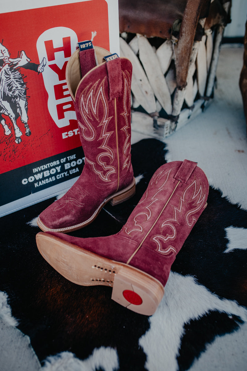 These deep burgundy rough out square toe Hyer boots will dominate the arena and turn heads downtown. The comfort of these boots are unbelievable, with a cushioned insole, classic stacked leather and a 13" shaft. The construction and style of these boots are to die for and you will have the 'Augusta's' for years and years to come!