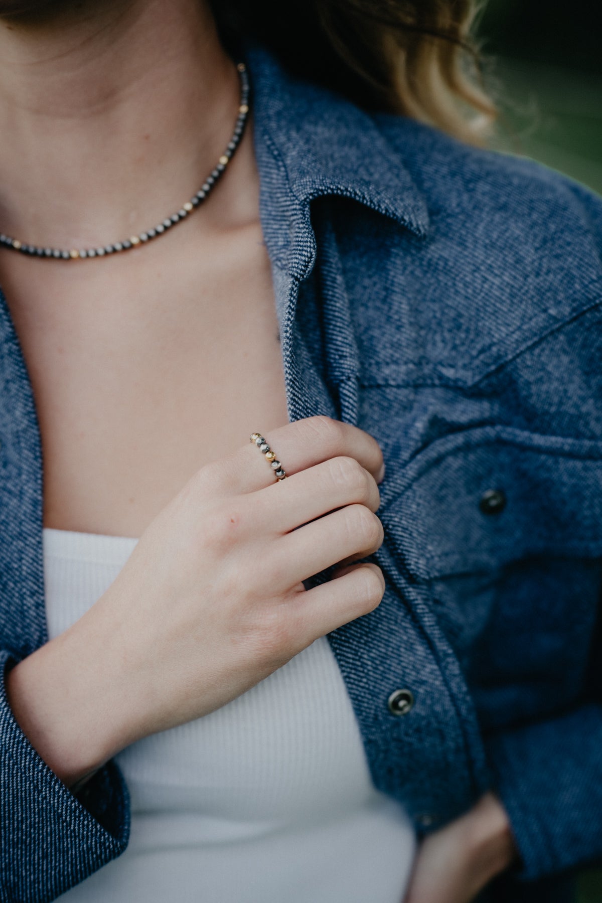 4mm Navajo Pearl Ring with Gold Beaded Accents (Adjustable)