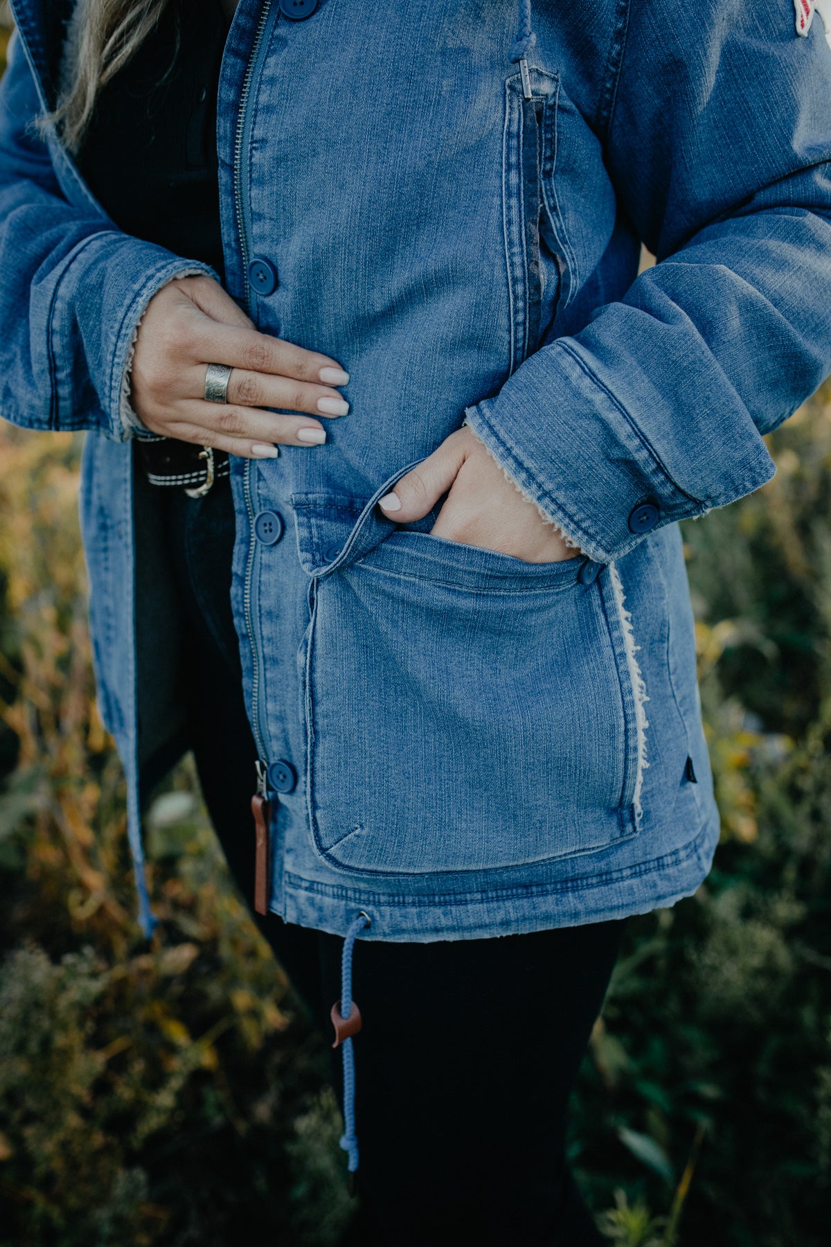 This jacket is one you'll absolutely adore, making it tough to label it simply as a 'barn' jacket. This mid-heavyweight sherpa-lined canvas jacket by Kimes truly deserves your attention! We’re fans of the stylish canvas or denim exterior, and the sherpa lining is just so warm and inviting! It features two-way front pockets and lower chest pockets lined with sherpa for hand warming—once you try these, you'll wonder why every jacket doesn't have them! The leather logo patch and subtle longhorn branding add the perfect finishing touches to this stunning piece. Plus, the denim version comes with fun patches for an extra flair!