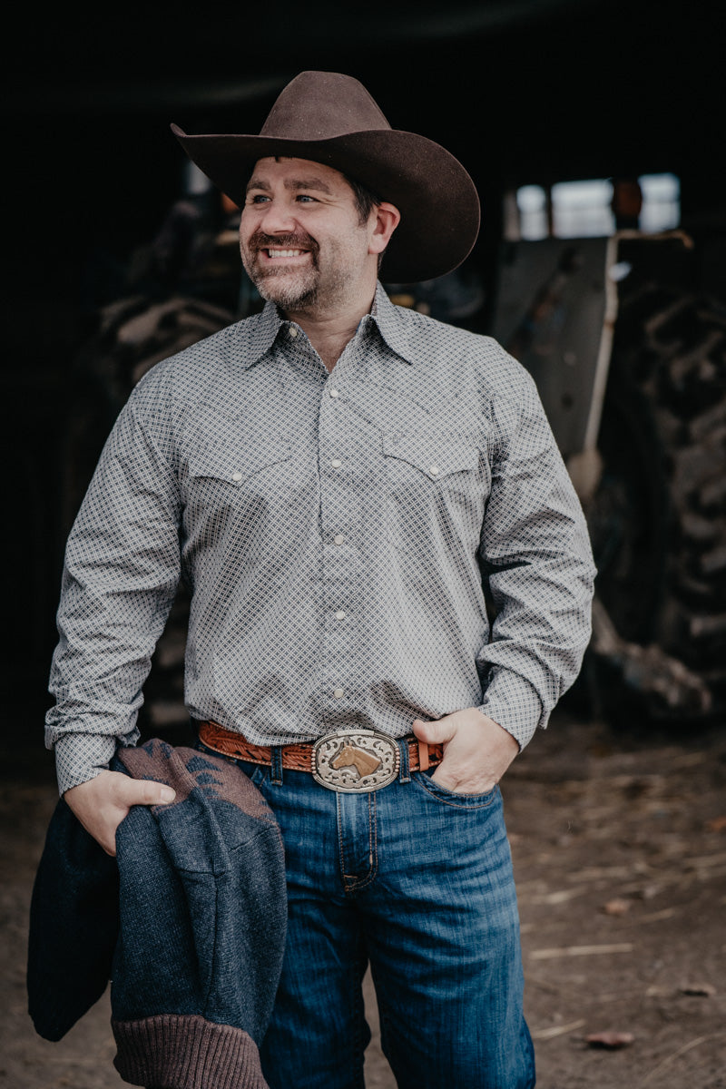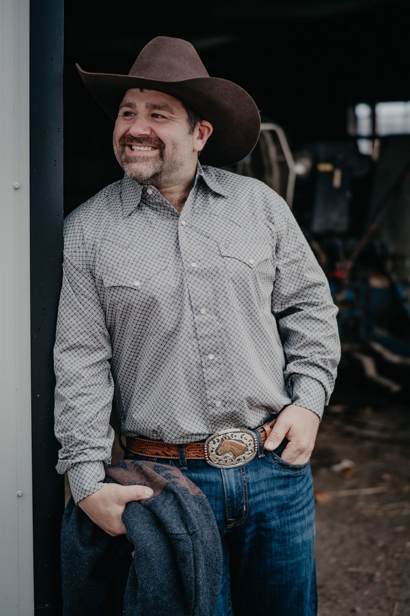 We are pleased to bring you this stunning four point geo print shirt from Stetson. This stunning pearl snap has two chest pockets with snap closures, cuff snap closures and a single back yoke. We are loving the super soft and breathable material of this stunning shirt.