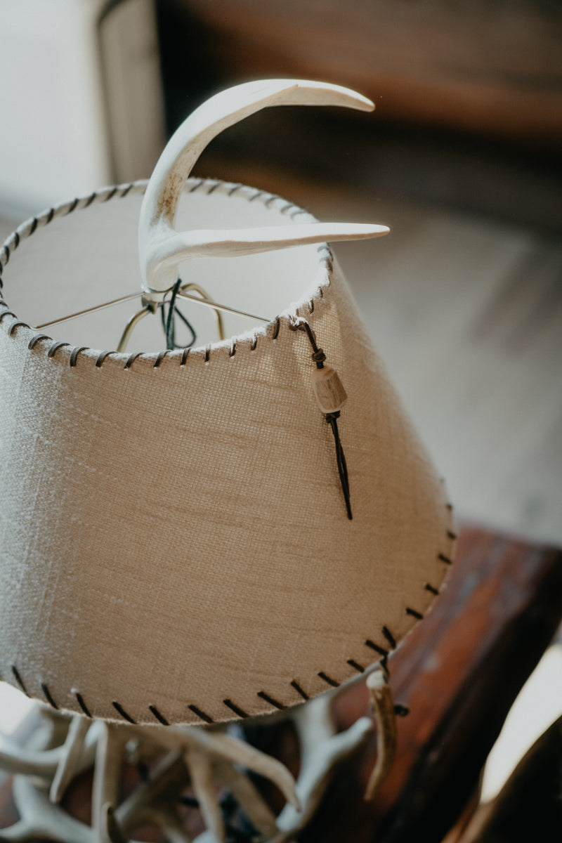 Cast warm, rustic charm in your living room or another area of your home with this genuine antler lamp, meticulously handcrafted in Ontario using naturally shed antlers, assembled using resin for a beautiful look. Top it off with a customized lampshade - this piece is like no other!