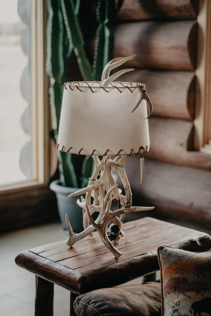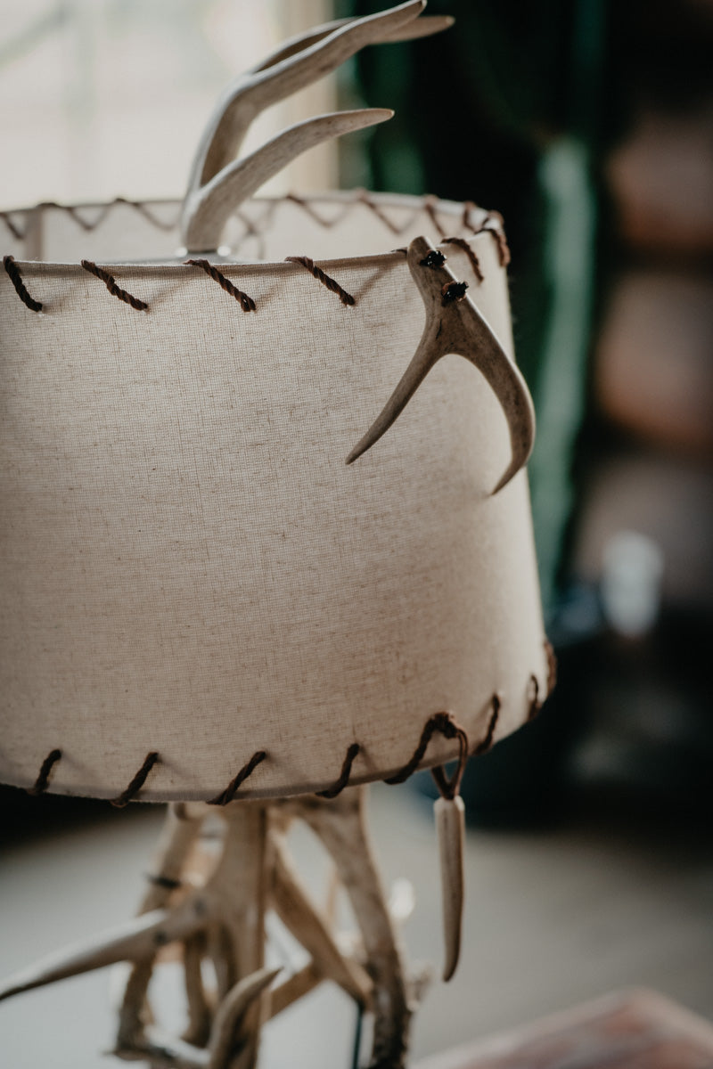 Cast warm, rustic charm in your living room or another area of your home with this genuine antler lamp, meticulously handcrafted in Ontario using naturally shed antlers, assembled using resin for a beautiful cluster base look. Comes Topped off with a customized lampshade - this piece is like no other!
