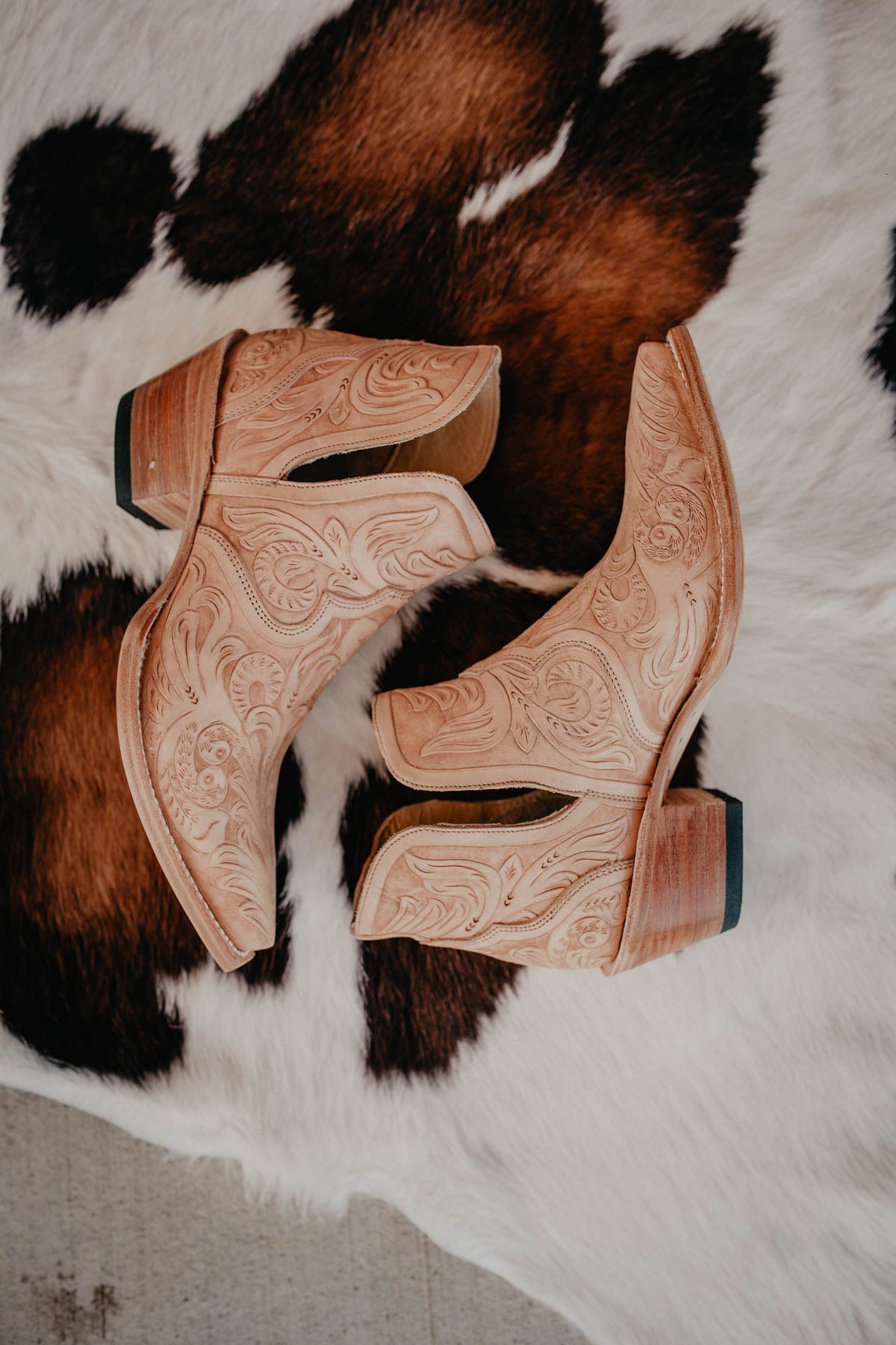 'Aviana' Stetson Fully Tooled Leather Snip Toe Ankle Booties (7.5- 11 Only)