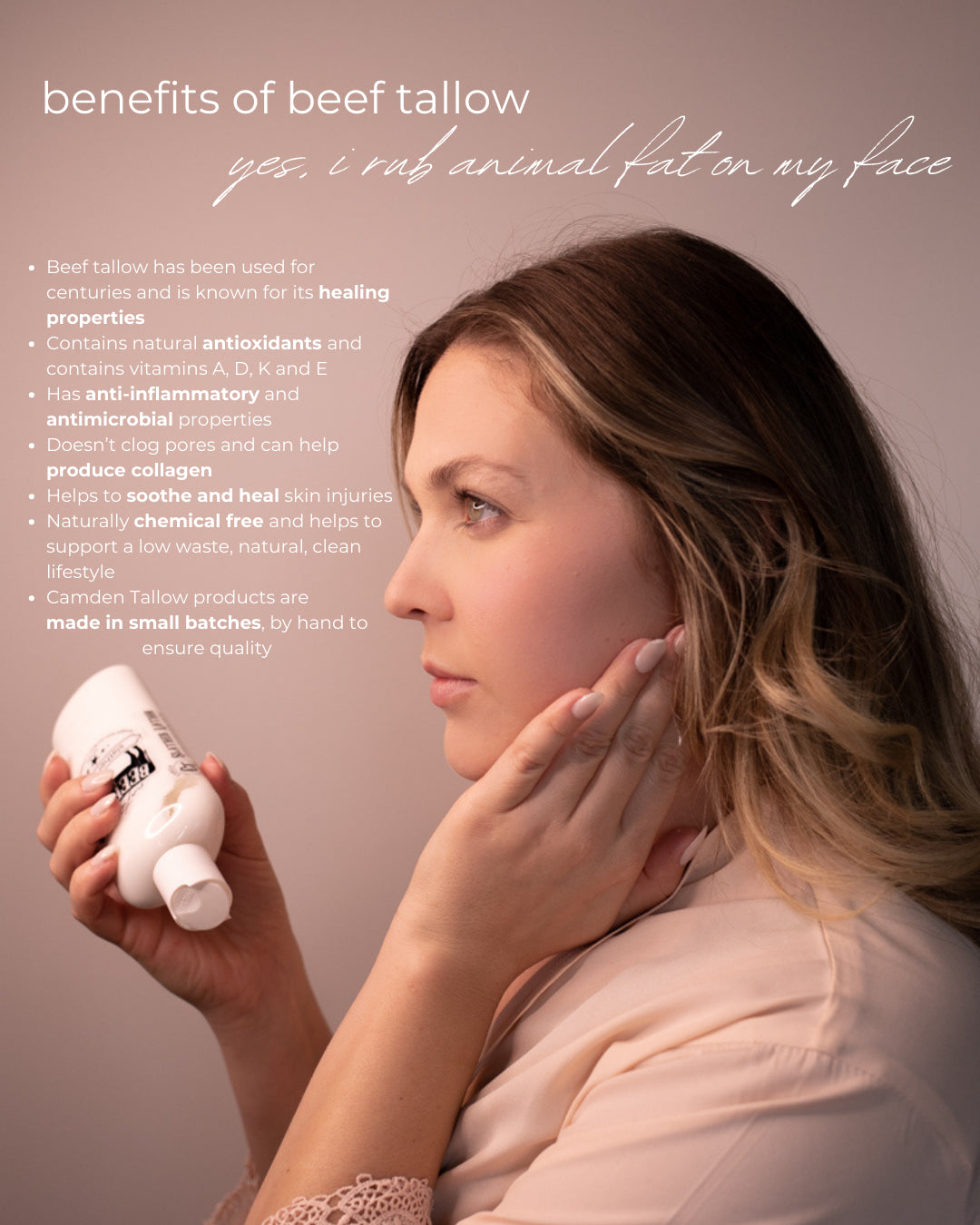 Slather this on, generously, you won’t regret it! This light weight, gentle scent, all skin types, chemical free, all over body lotion is exactly what your skin is craving. With Camden Tallow's natural beef tallow, and a host of certified organic oils; this non-pore clogging lotion will leave your skin feeling hydrated and fresh with head to toe moisture. Use it morning or night, for a proper balance of skin moisture and natural elasticity, with different varieties to choose from . Slather it - everywhere!