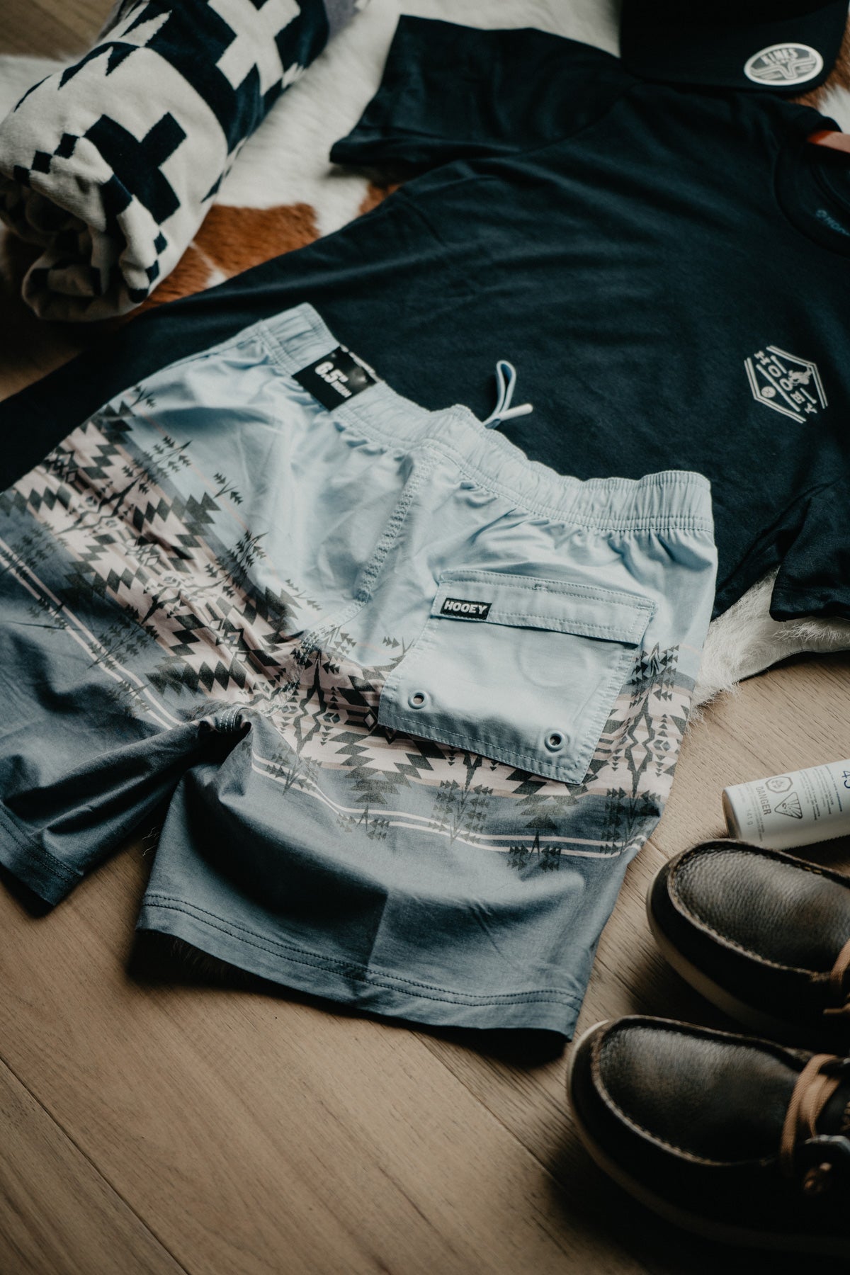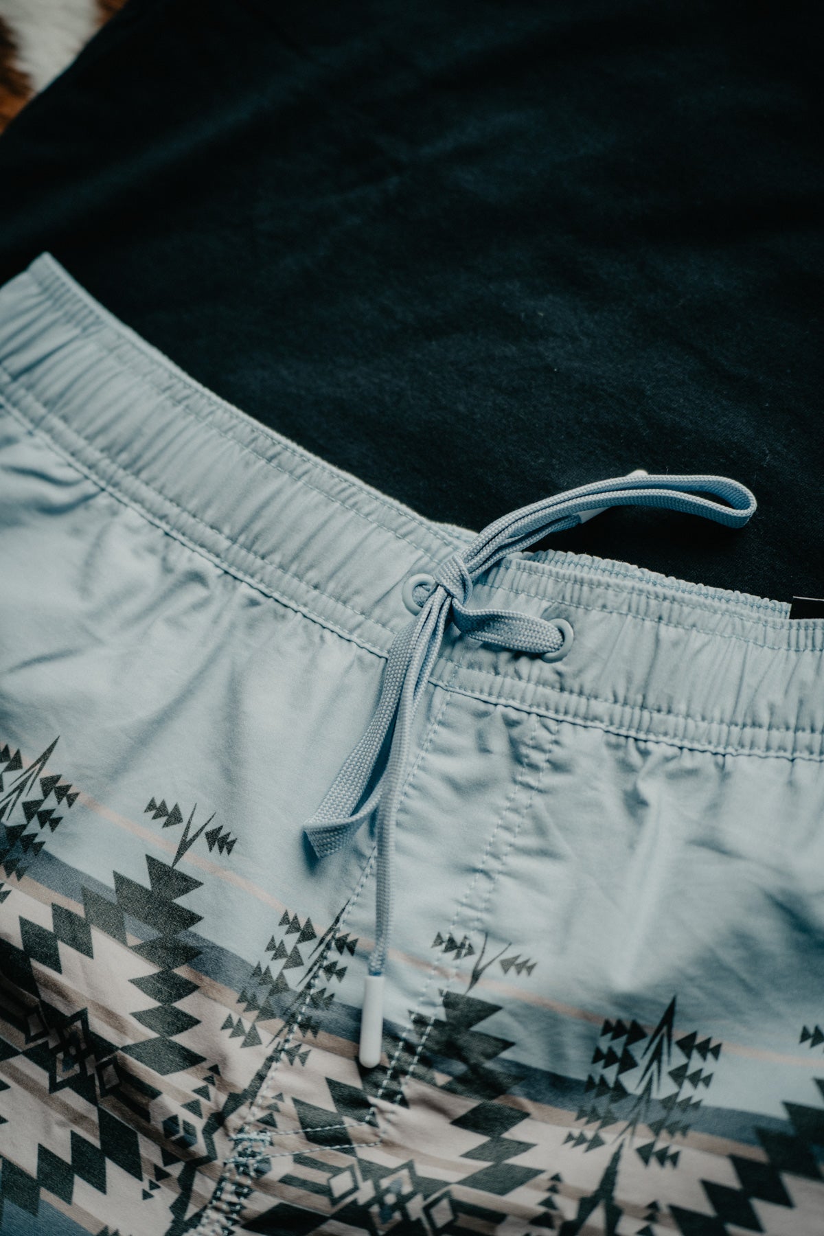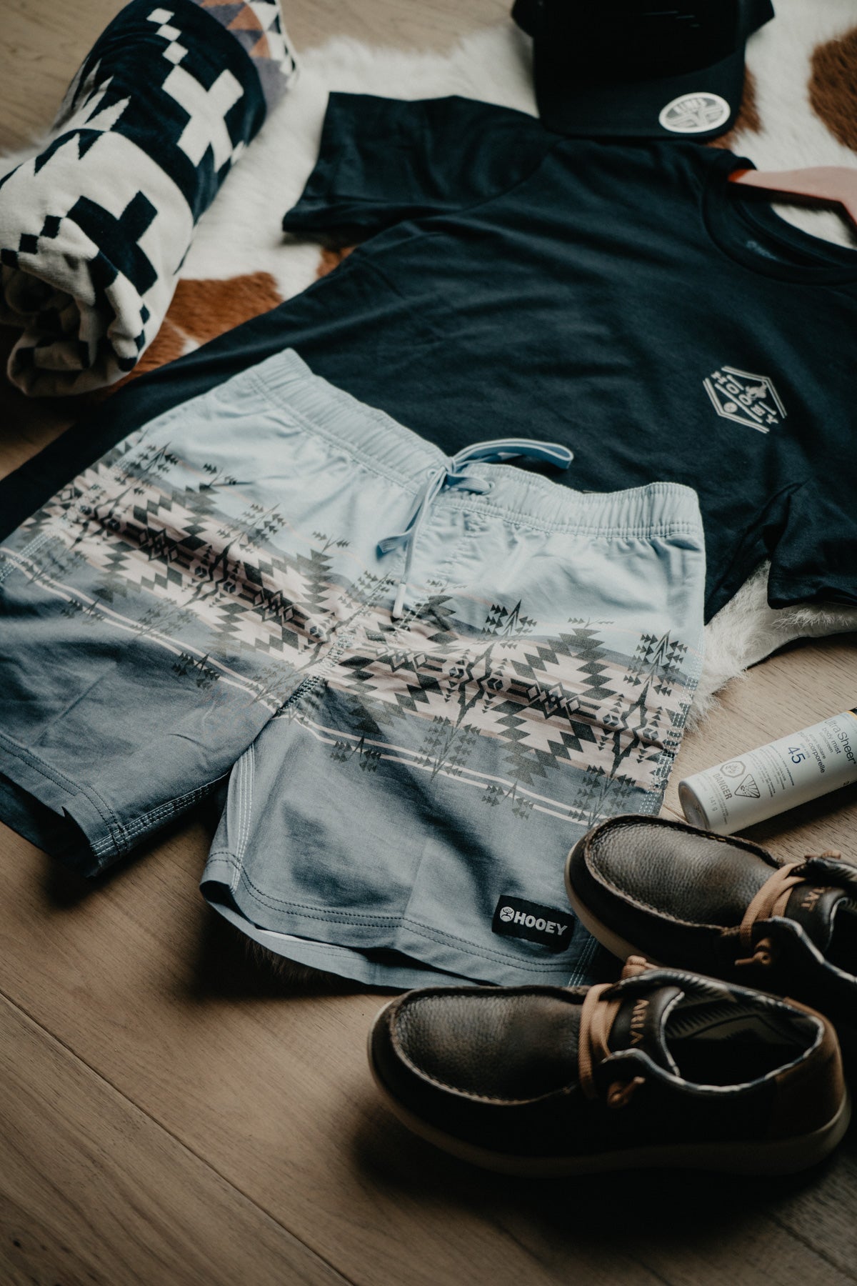 Make a splash in these fun western inspired blue aztec printed boardshorts by Hooey! All the features you need in a staple pair of swim trunks, these will be a favourite all Summer long!