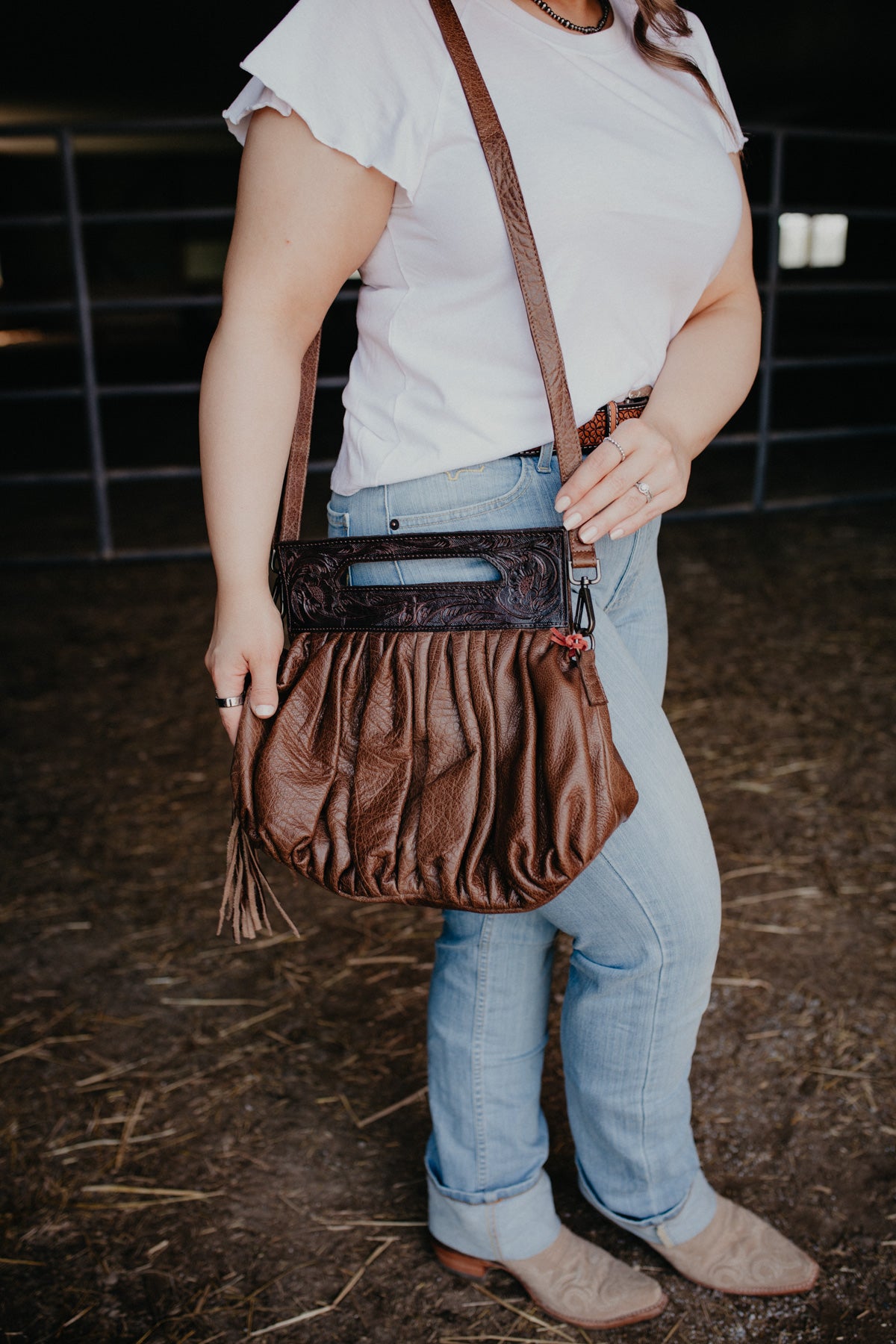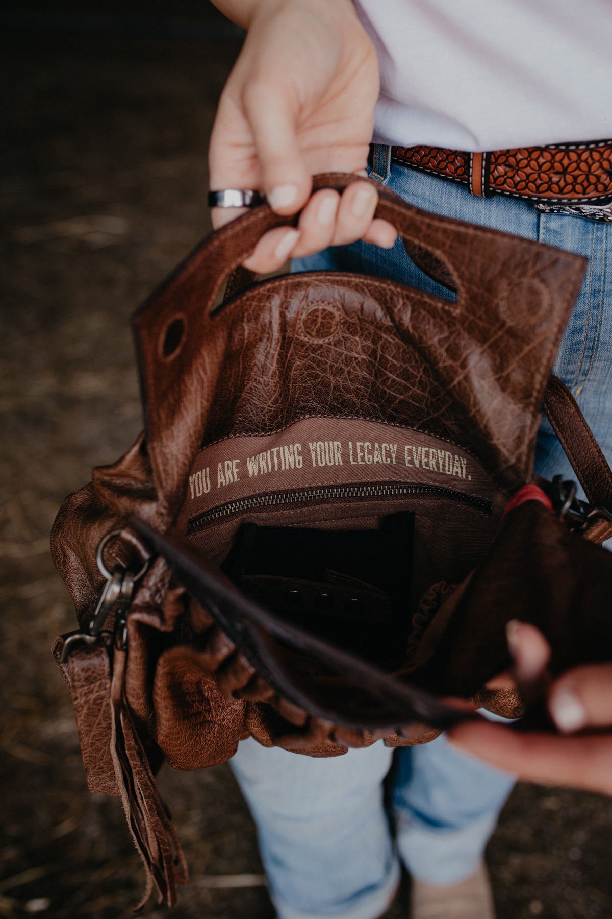 Experience a unique blend of rustic elegance and modern flair with the Boho Cowgirl collection. Crafted with naturally exquisite buffalo leather, this collection retains the original beauty of the raw material through a special dye process. Soft fringe accents and tooled leather details add an extra touch of charm.