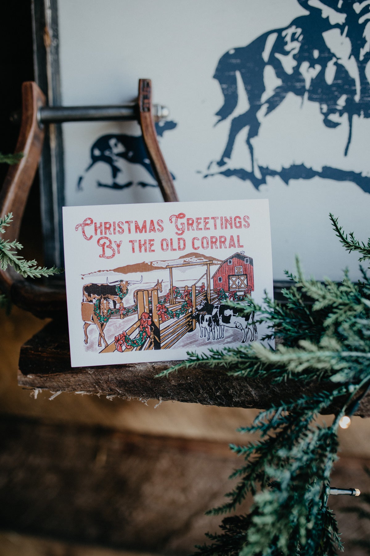"Christmas Greetings by the Old Corral" Christmas Card (5, 10, & 25 pack)