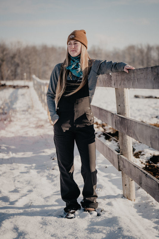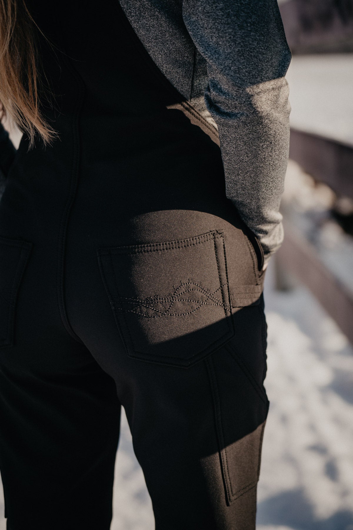 We KNOW by now just how much you LOVE the Cowgirl Tuff fleece lined microfibre pants - the raving reviews say it all! Introducing a new BIB version - the same fabric, cozy fleece lining, handy thigh cell phone pockets, and customizable 37" inseam you already love - now available in a bib version to help retain more body heat as you enjoy a huge variety of winter activities! Make everything from riding, to chores, to time spent in the hockey arena, to walking your dog / hiking more enjoyable, these are a game changer! They are lightweight with stretch in all the right places, while being constructed in a way that offers wind-blocking and cozy fleece lined warmth.