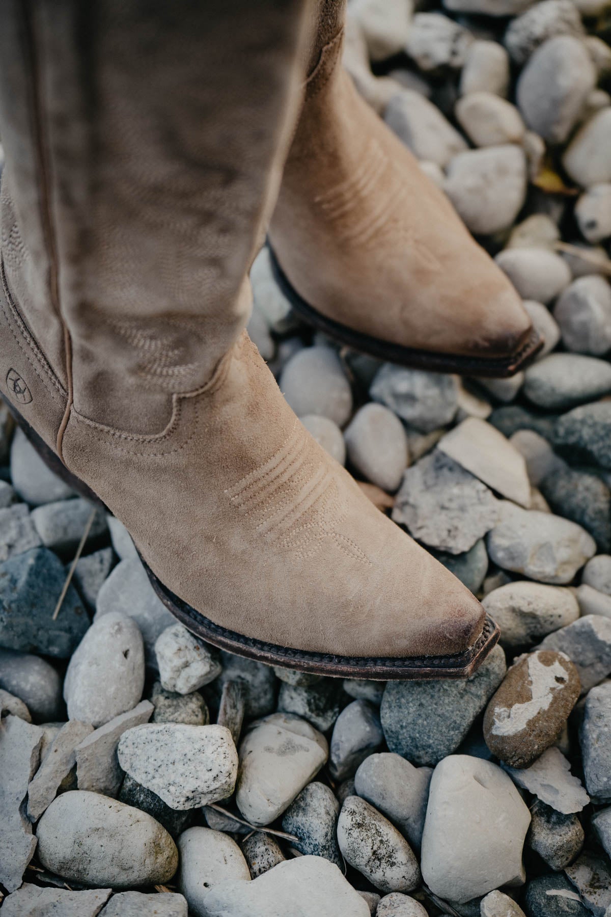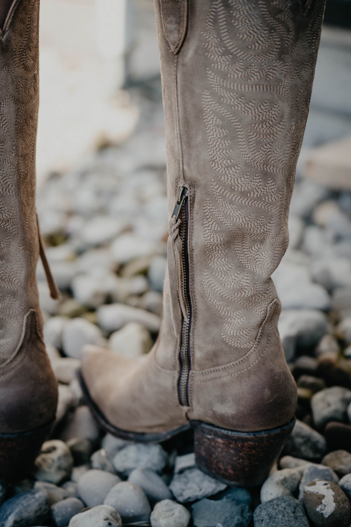 Ooooooo baby! These seductive suede, sky high distressed dijon (taupe) beauties are absolutely incredible and have us drooling! Made for turning heads but also for comfort. Killer tonal stitching detail, 18" knee high shaft height, and typical Ariat footbed quality including ATS technology that provides all day comfort will have you feeling as confident as you are comfortable. Stretch fit panels under the pull tabs give an extra inch of stretch, technology allows to fit a larger range of calves. Grab them while you can - these won't last long and will be SO perfect for styling all your fall outfits.