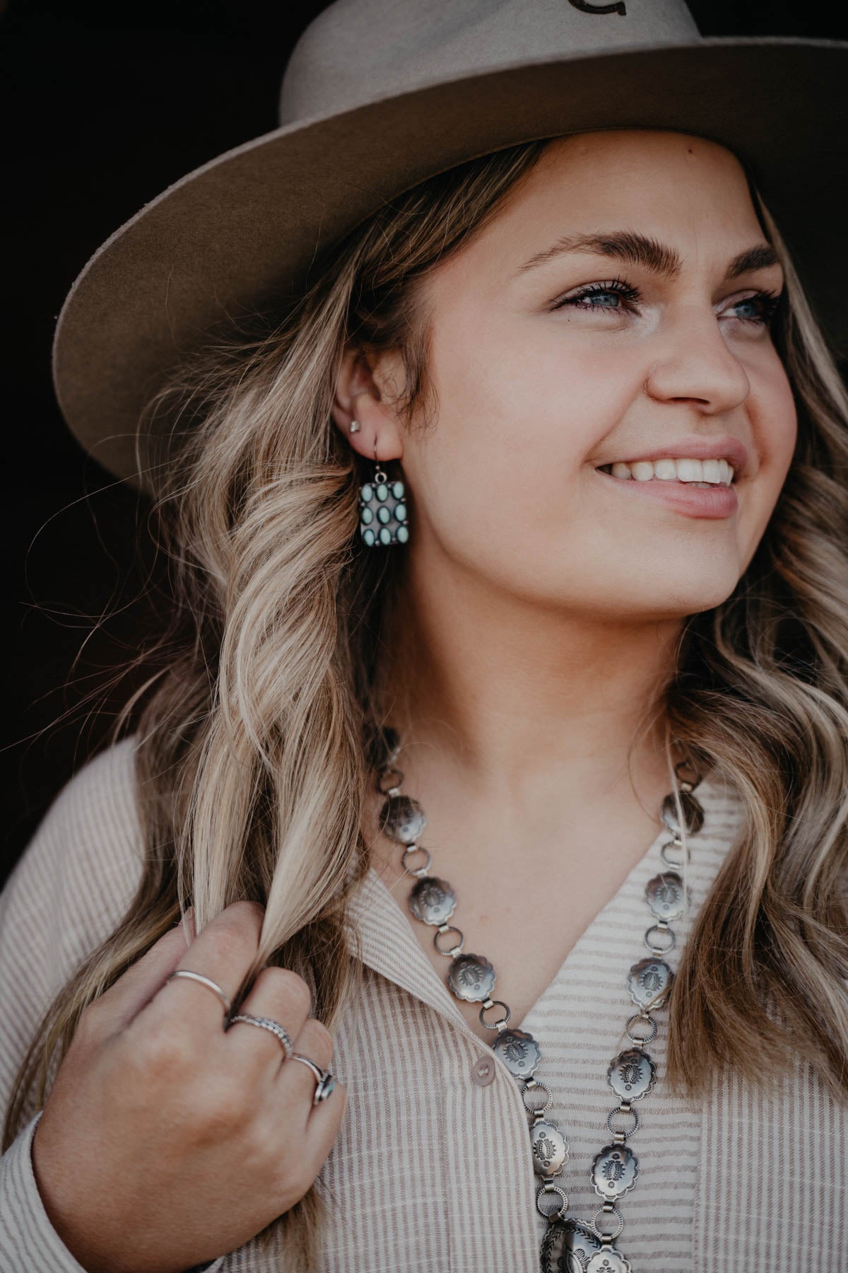 Genuine Turquoise Multi Stone Rectangular Drop Earrings