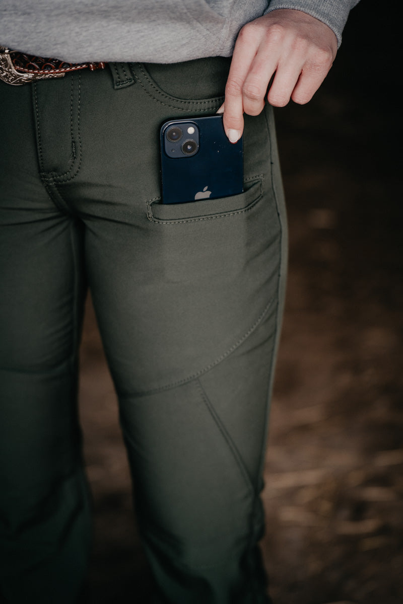 Y'all loved these pants in black now you can stay warm and ready for anything in these Cowgirl Tuff OLIVIE GREEN winter pants! Crafted from wind-resistant microfiber with a cozy fleece lining, they're your go-to for riding, ranch work, outdoor adventures, or just braving the cold.