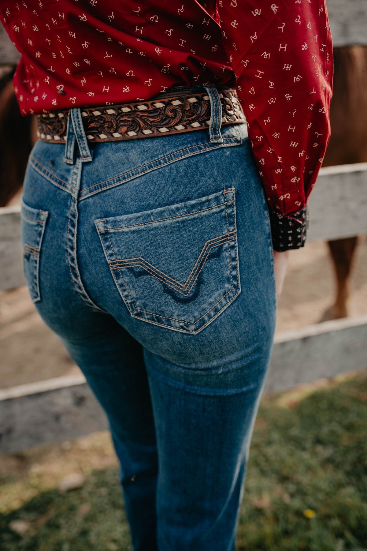 This 'Lettie' slim trouser style is a favourite with the curved yoke design, classic pockets and sleek, smooth feel. Made with luxuriously soft denim and extra stretch for optimal movement, these trousers feature that slimming curved yoke and high rise for a flattering fit. The medium-dark blue wash, simple pocket styling and slim fit make these the perfect stretchy and versatile denim!