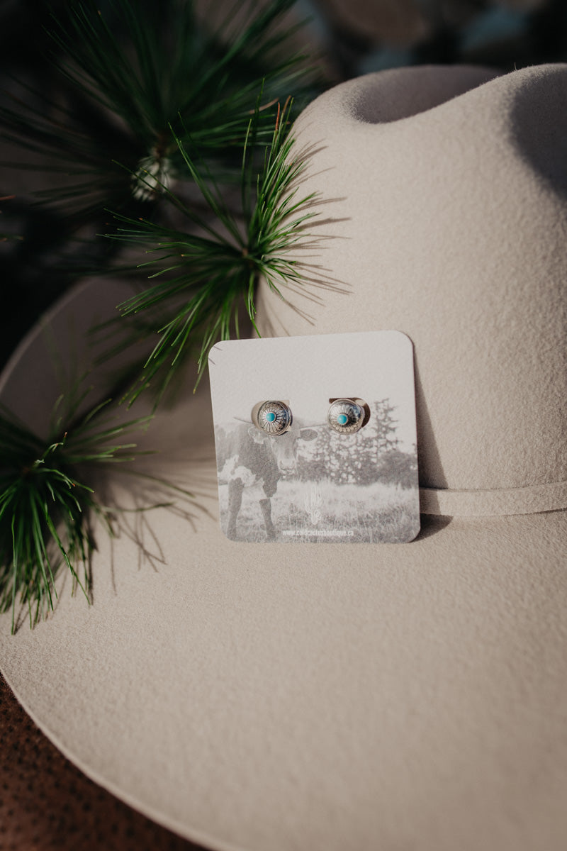 The mini concho style flower design is crafted from high-quality sterling silver, while the smooth 1.2cm width adds a subtle elegance and the dainty turquoise accent adds a pop of colour. Simple and easy to match, these earrings are the perfect addition to your jewelry collection!