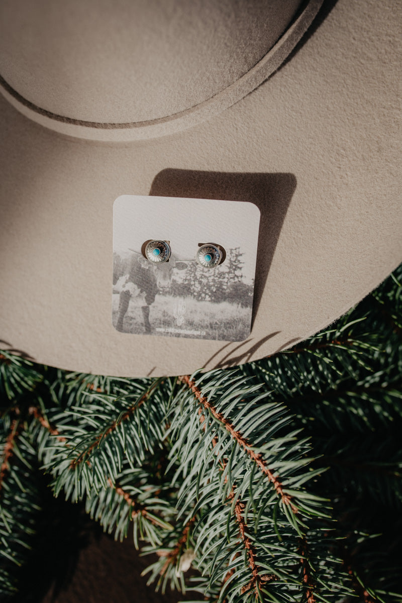 Dainty Round Smooth Edge Concho Sterling Silver Earring with Turquoise Accent