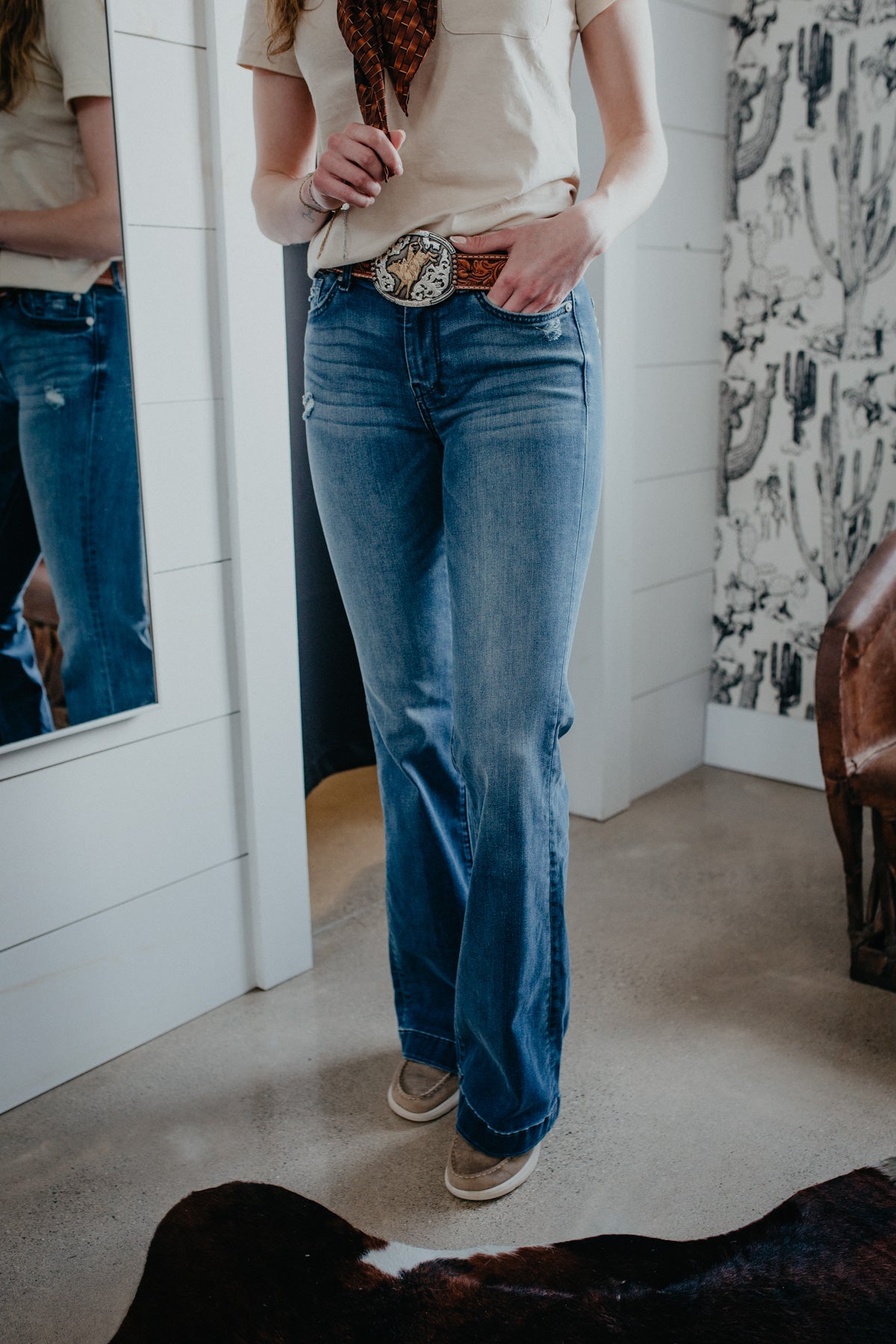 The Dojo by 7FMK is a premium (modest) flare jean with a trouser leg with cuff. Everyone who hasn't tried a pair of 7's asks - what's all the hype about?! Let us tell you, these premium ultra buttery soft stretch denim will feel like wearing a pair of jeggings, yet the look, maintained shape, and durability of traditional denim. Once you try a pair, you won't be able to go back to what you had previously been wearing!