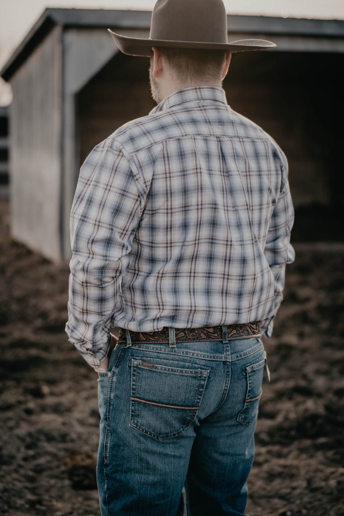 Another amazing classic fit Pro Series Ariat button down coming your way! The 'Dash' long sleeve is perfect for anything, featuring a a plaid design printed in brown, navy, cream & red is sure to be a favourite.