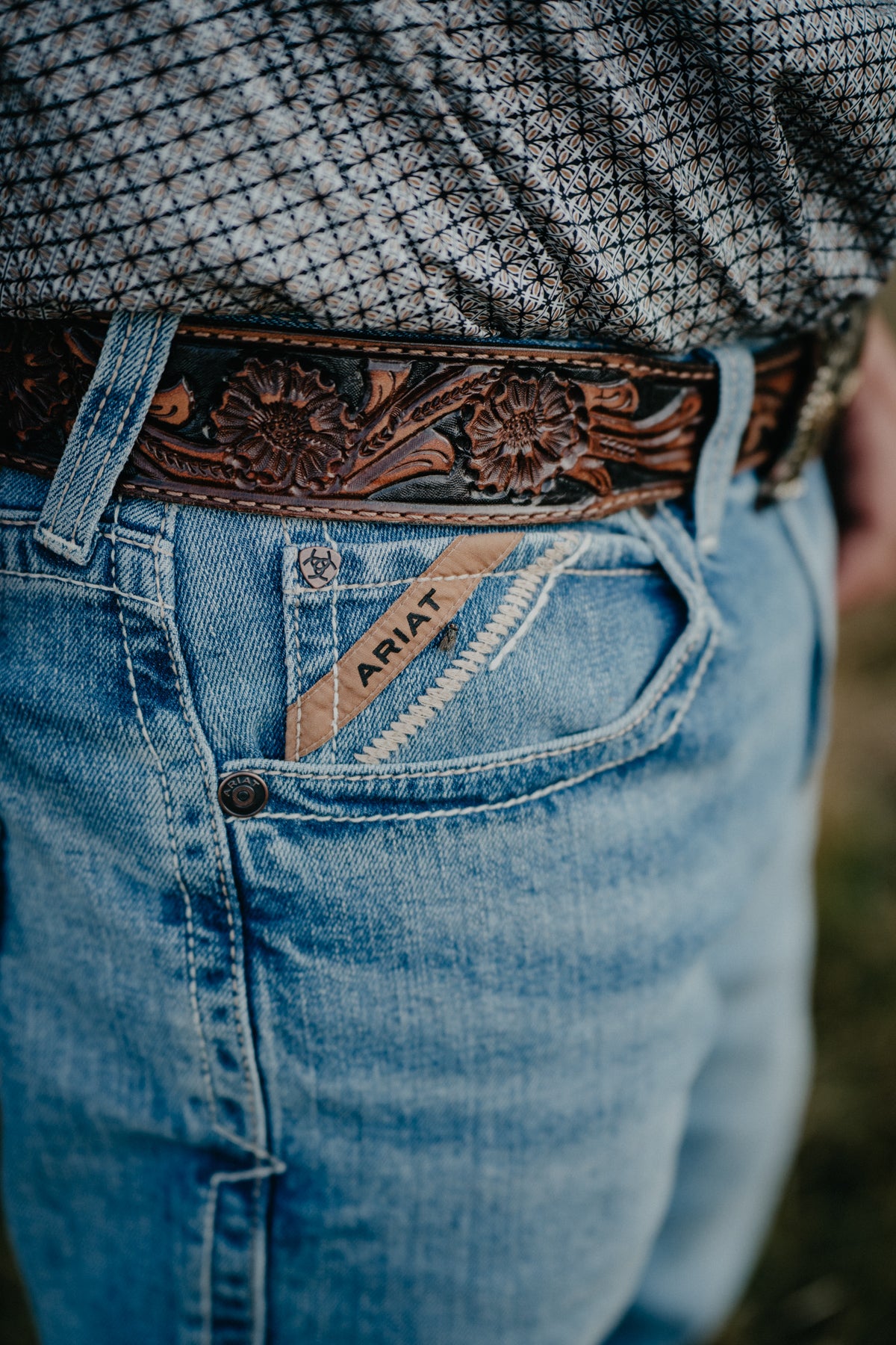 A new to us but popular men's denim fit from Ariat in a staple light wash! These Ariar M2 'Cameron' jeans are relaxed fitting through the seat and thigh with a stackable bootcut leg. You will most certainly love this pair of classic and timeless denim for years to come!