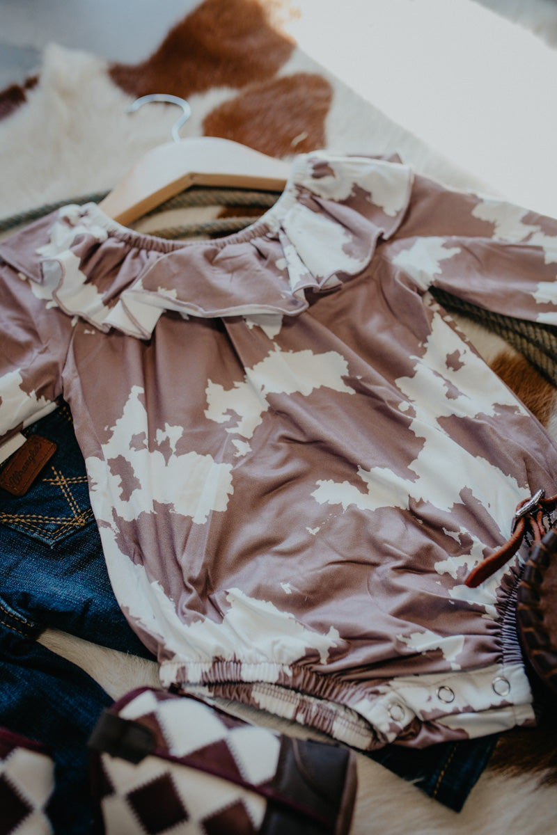 'Ella' Brown Cow Print Long Sleeve Onesie/Shirt (3-6M to 5T)