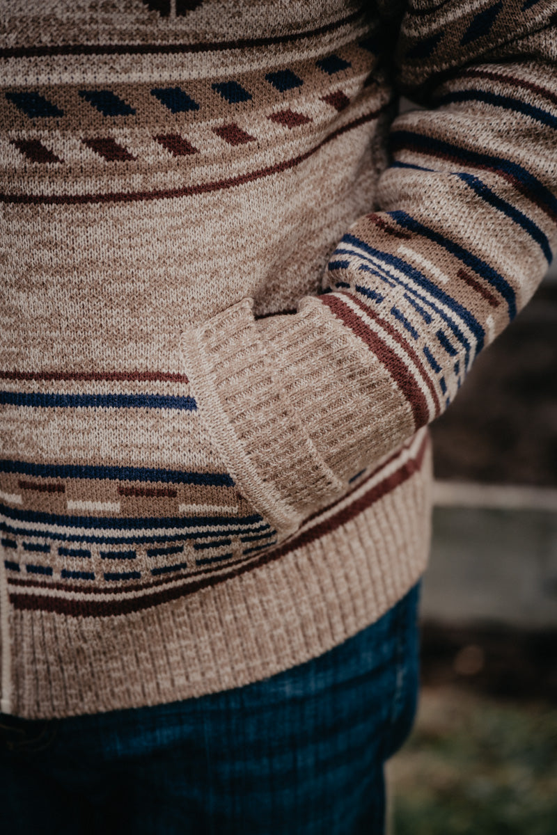 Introducing the 'Elwood'—a tan buffalo sweater that's basically a warm embrace in knit form. The soft fabric feels incredible against your skin, while the full zip front gives you total control over your comfort level. Toss your essentials into the hip pockets and you're ready for anything!