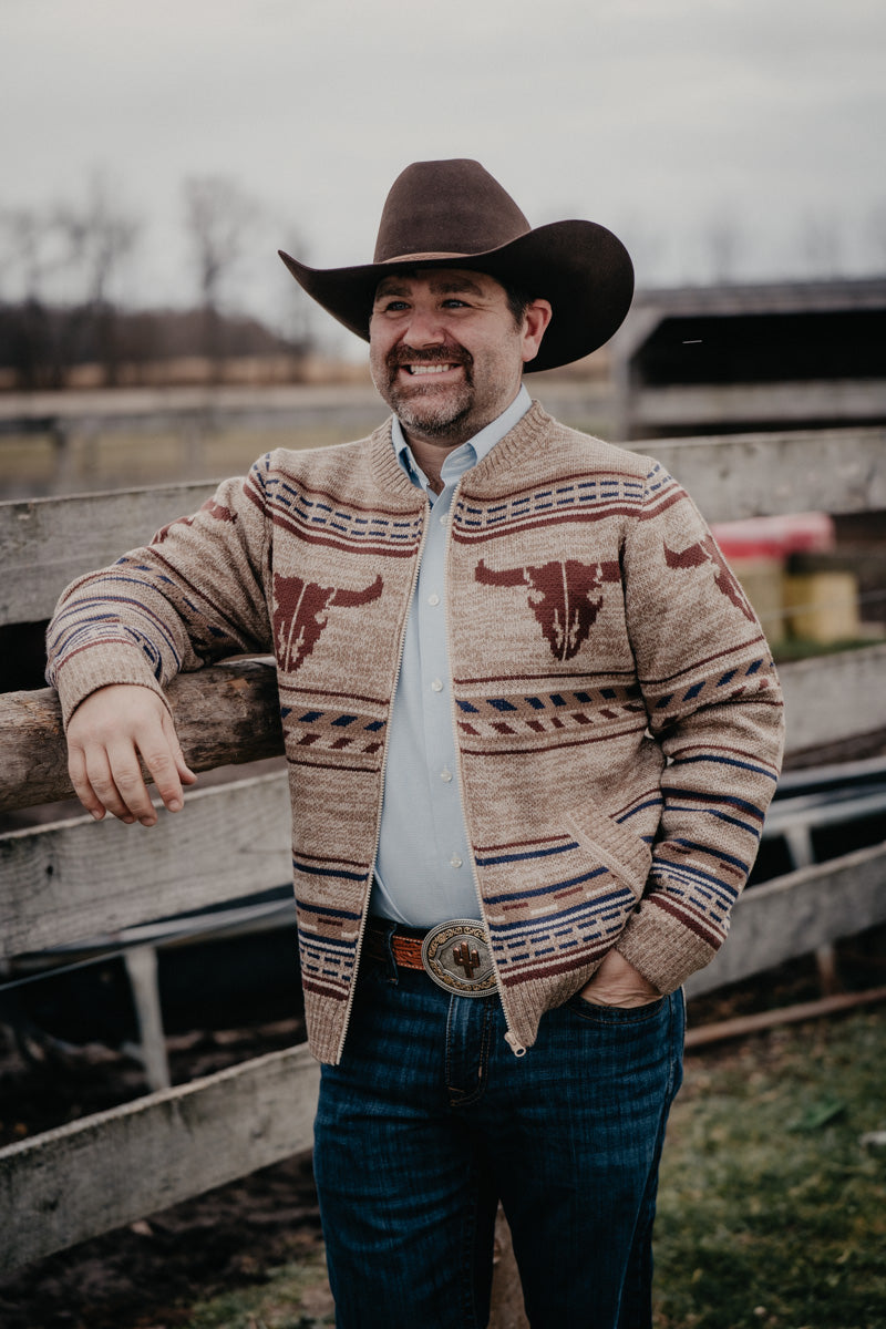 'Elwood' Men's Tan Buffalo Zip Front Sweater (M-XXL)