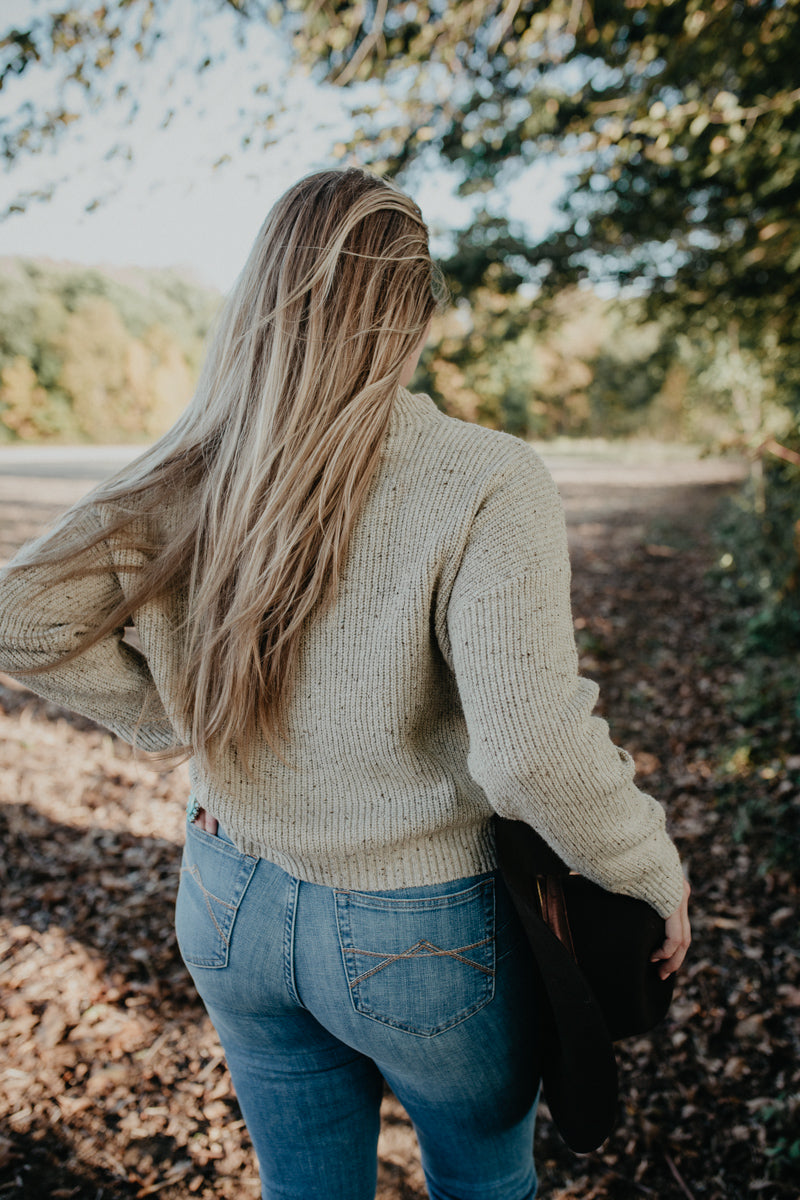 'Evolet' Heathered Oatmeal Mock Neck Sweater (XS-L)
