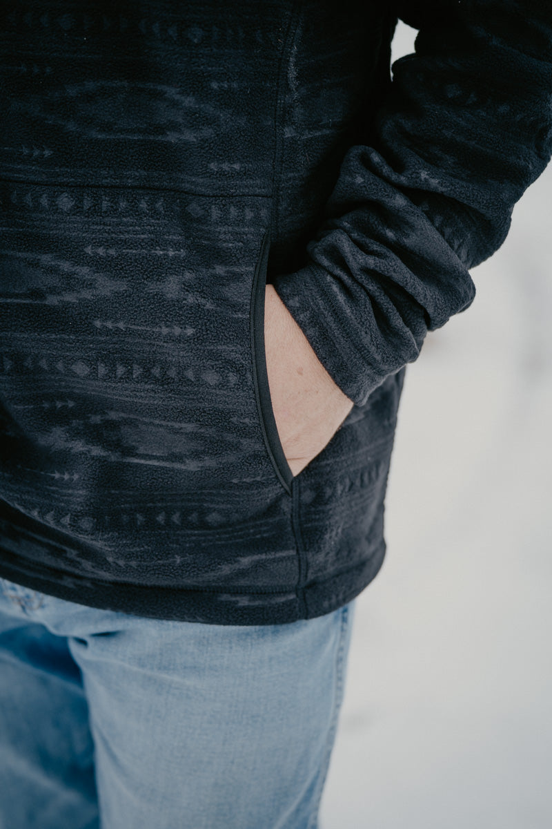 Stay cozy without the bulk in this lightweight fleece pullover from Panhandle Slim. Featuring a striking solid black base with a faded Aztec allover print, it's the perfect grab-and-go layer for any season. The quarter-zip design and roomy kangaroo pocket make it effortlessly wearable, while the soft, comfortable fleece keeps you feeling snug all day long. Simple, stylish, and ready for whatever comes your way!