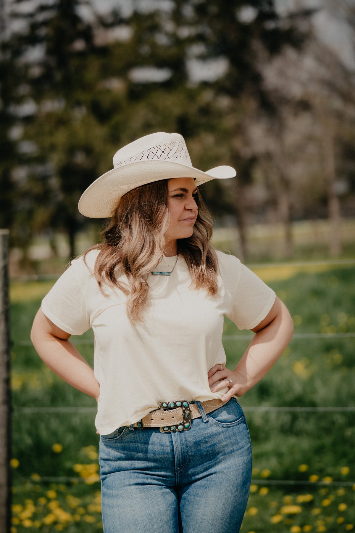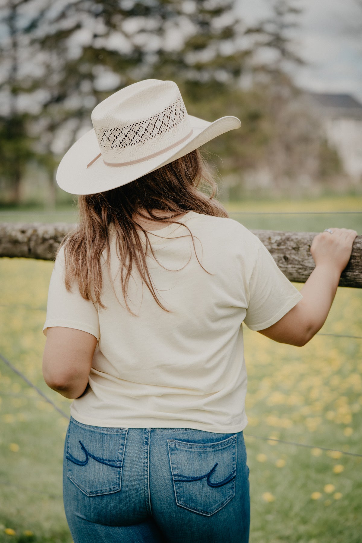 Your wardrobe is in need of this classic 100% cotton cropped t-shirt, designed for ultimate comfort and versatility! This must-have piece effortlessly pairs with your favourite jeans and cowboy boots for a laid-back look or can be dressed up with a skirt for a night out. Soft, breathable, and stylish, it’s destined to become your new "Go-To" staple!