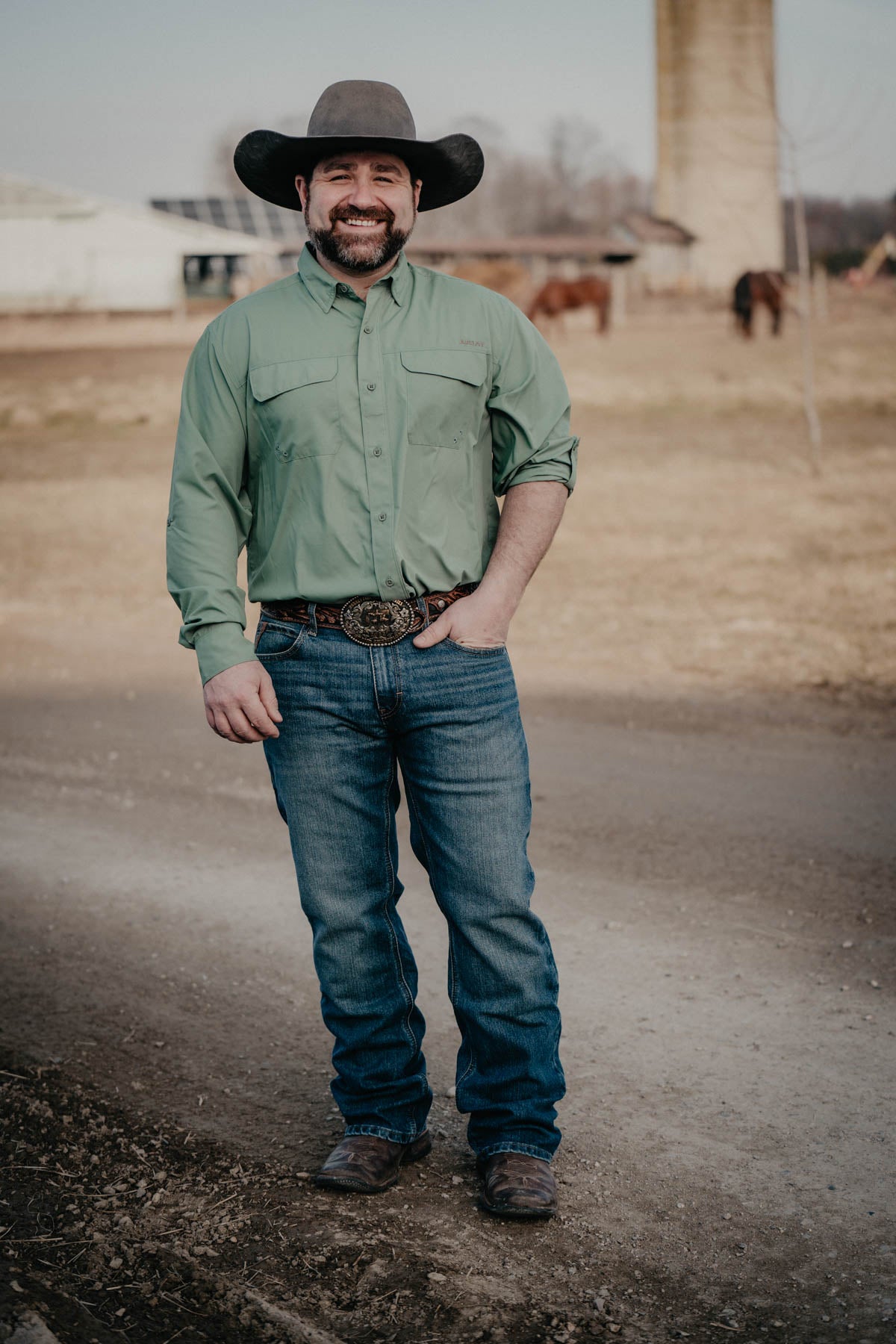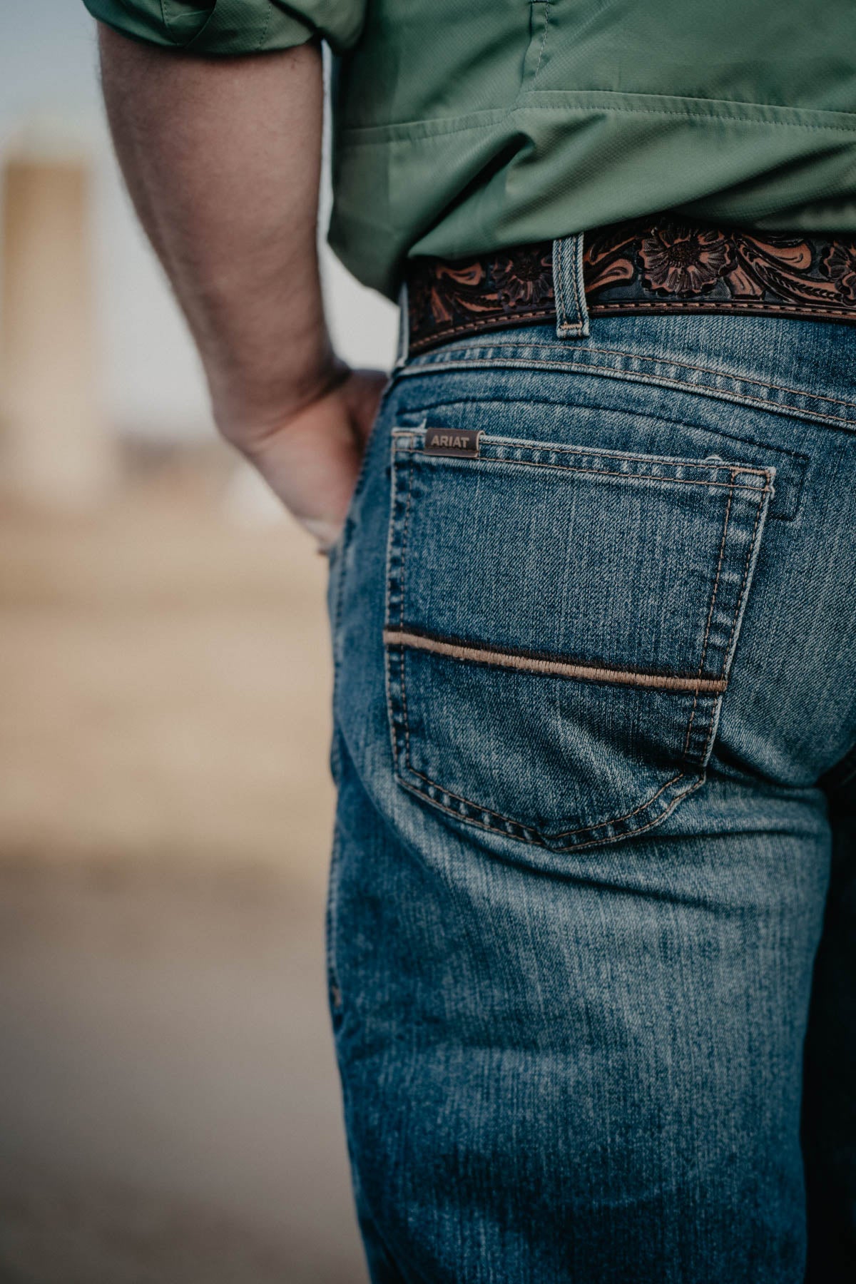 One of our most popular men's Ariat denim styles in a new "Pro Series" denim, featuring 2X more durable denim with stretch, and rip resistant construction including reinforced front and back pockets, and 7 belt loops for a more secure fit! These jeans offer a modest fit through the thigh (not as slim as CINCH Ian or Wrangler Slim fit, but not overly relaxed either) and a stackable straight leg. We love the nice solid medium wash and simple back pocket design.
