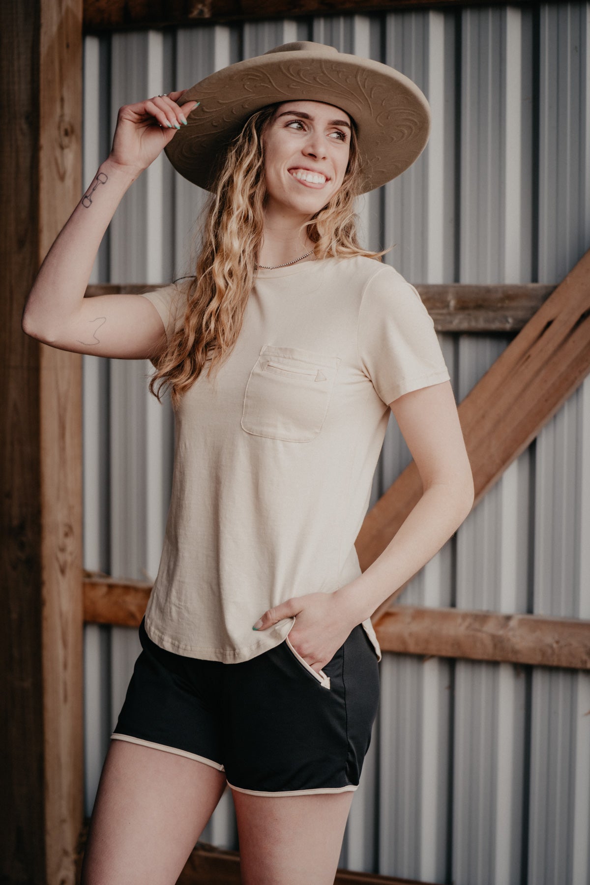 Be bold and stand out with Handy as a pocket t-shirt! Choose from a selection of 3 vibrant colours. Keep your essentials close with a chest pocket on the left side. The round end adds a touch of flare. Trust the fit, it's true to size!