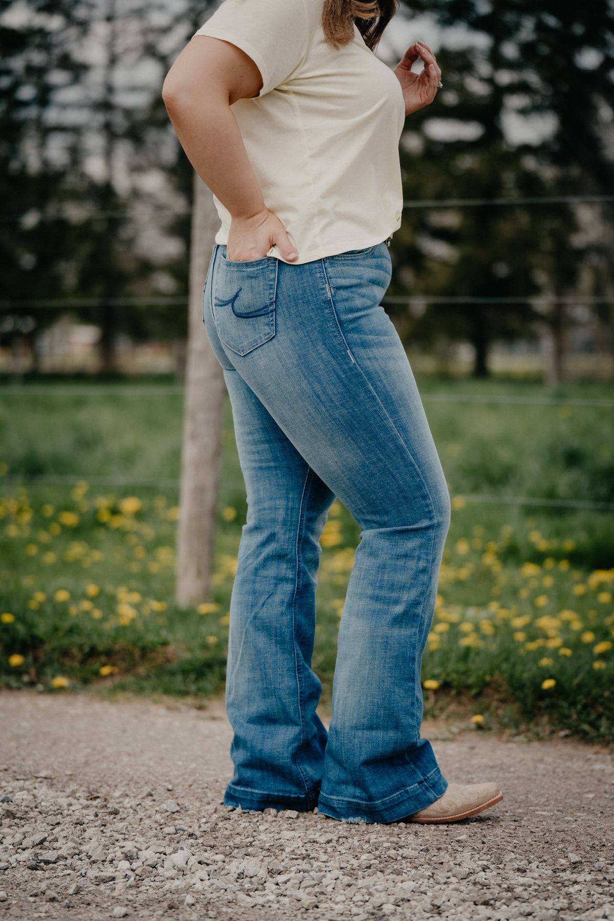 Sizing Tips: Sizing runs generous. This denim is a little lighter weight and stretchier than typical Ariat denim. We recommend sizing down, particularly if you are between sizes or prefer a snugger fitting denim. Sarah is 5'3" a size 29 and shown sizing down to a size 28S.