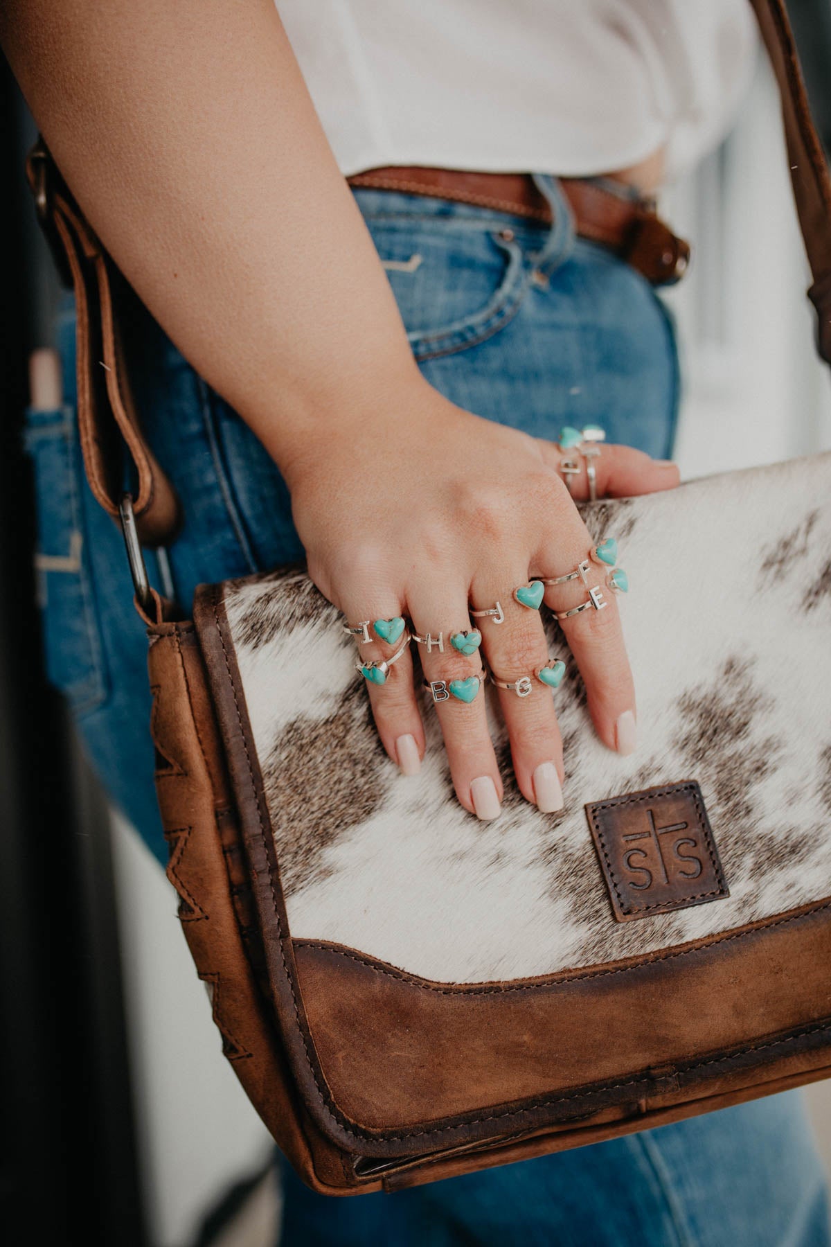 We just adored these darling sterling silver rings featuring a sterling letter / initial and genuine turquoise heart that are open at the front. For yourself or as a gift, the personalization of these is sure to be appreciated! These are sized (6-8 and 9-11) and slightly adjustable! Your own first or last name initials, or perhaps that of a loved one such as a kid - which will it be?!? These would make the PERFECT Mother's Day gift! Everyone loves a thoughtful, personalized gift!