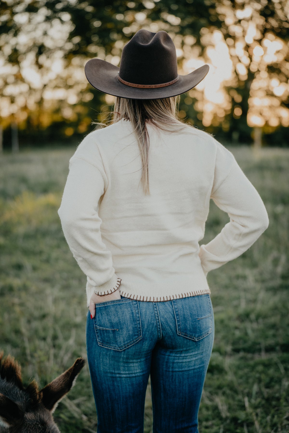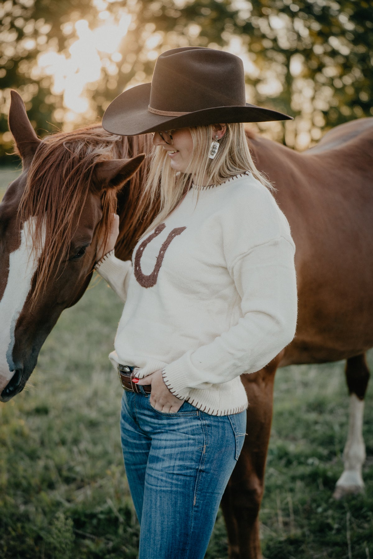 'Jordan' Horseshoe Embroidered Cream Sweater (S - L)