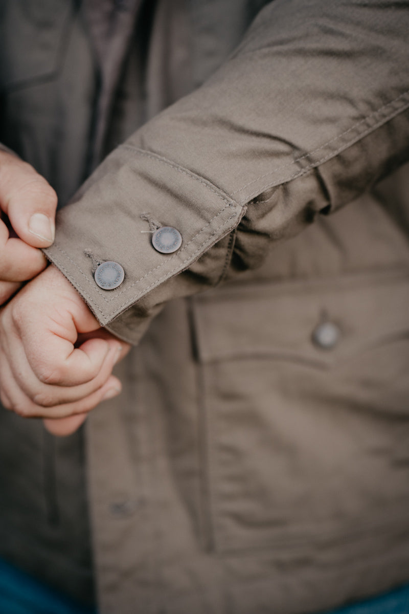 - Two snap flap chest pockets and two side drop pockets