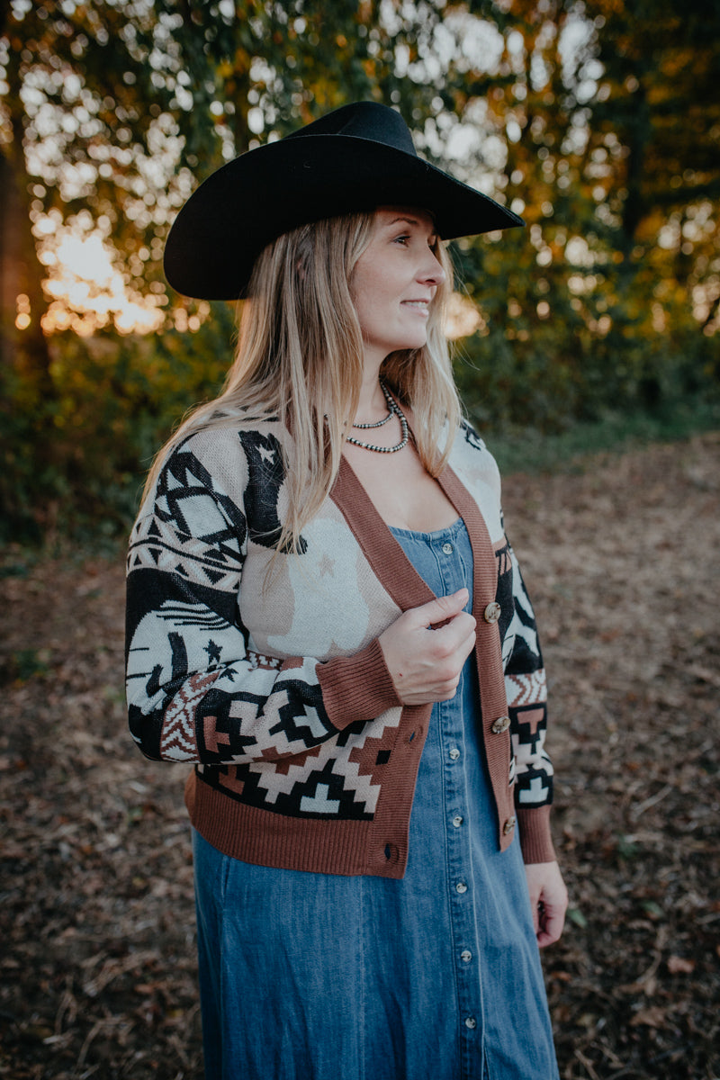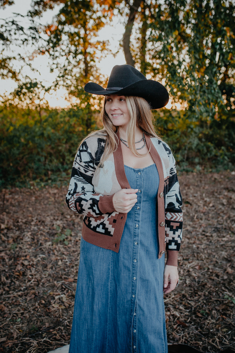 We are loving this stunning colour blocked bomber cardigan! This cardigan is medium weight and a great piece for layering on the cooler nights. The warm toned colour block design is perfect for pulling in the fall tones for any outfit. From staying in and keeping it comfy to heading out for a night on the town, this piece will quickly become your go to!