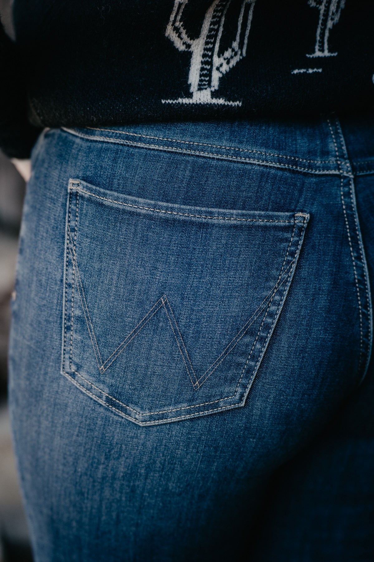Part of Wranglers denim line... 'Bespokes' are a new line of denim by Wrangler specially created to compliment every curve! We are loving these classic mid wash bootcut jeans, super practical and comfortable. They hug your curves so nicely and provide such a flattering fit. Featuring a super stretchy top waistband, classic W branded pocket, timeless bootcut opening and stunning mid wash. The 'Lacey' Bespokes by Wrangler will become a comfortable favourite for the barn, office, nights out and everyday!