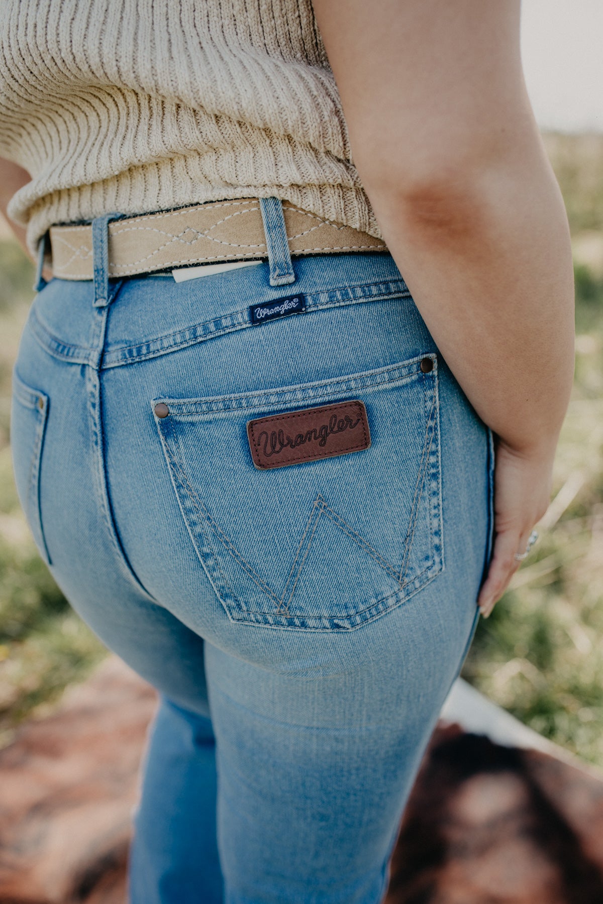 Flattering from every angle, the Women’s Wrangler ‘Lumi’ Retro High Rise Trouser Jean is a best-kept secret for ladies who love a classic jean. These denim trousers are crafted from a cotton blend with just a hint of stretch for all-day comfort. They come with a high-rise silhouette, a close fit through the thigh, and a 20.5” flared leg full of vintage vibes. Plus, the five-pocket styling, “W” pocket stitching, and logo patch bring an unmatched level of Western authenticity.