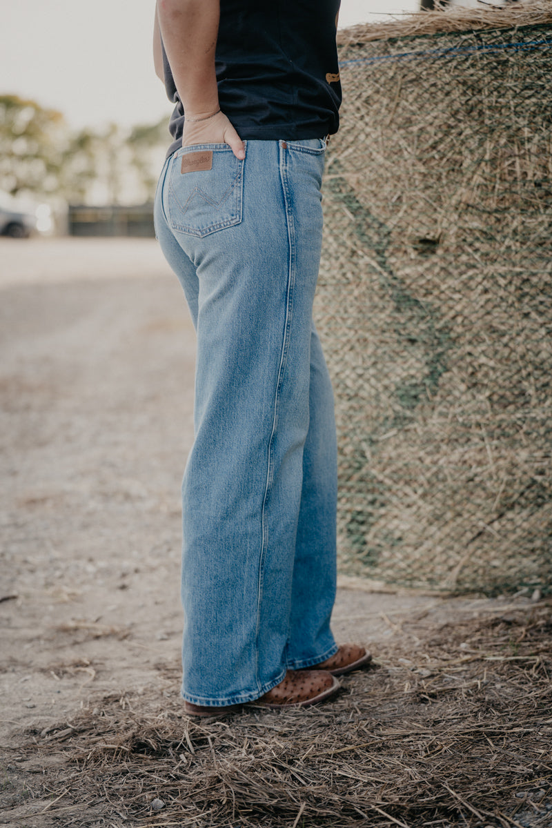 The 'Maise' Wrangler High Rise Loose Straight Leg jeans offer a flattering high-rise fit combined with a relaxed, straight leg silhouette for all-day comfort. Crafted from 99% cotton, these mid-wash jeans maintain their shape wash after wash. Featuring a 30" inseam, they pair effortlessly with your favourite footwear! Perfect for those seeking style without sacrificing comfort, these jeans are designed to move with you while keeping a timeless look!