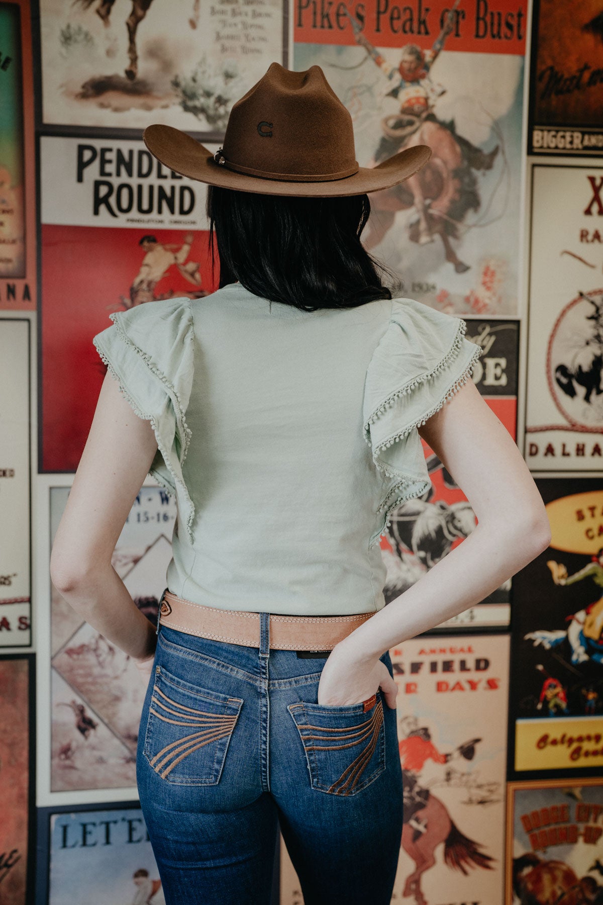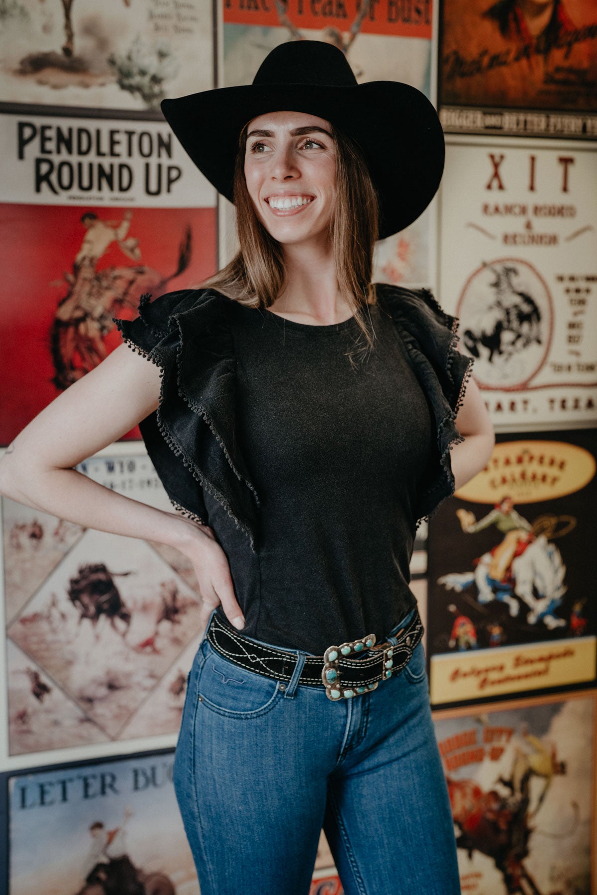 'Marlowe' Flutter Tee with Lace Trim {Two Colours} (XS-XXL)