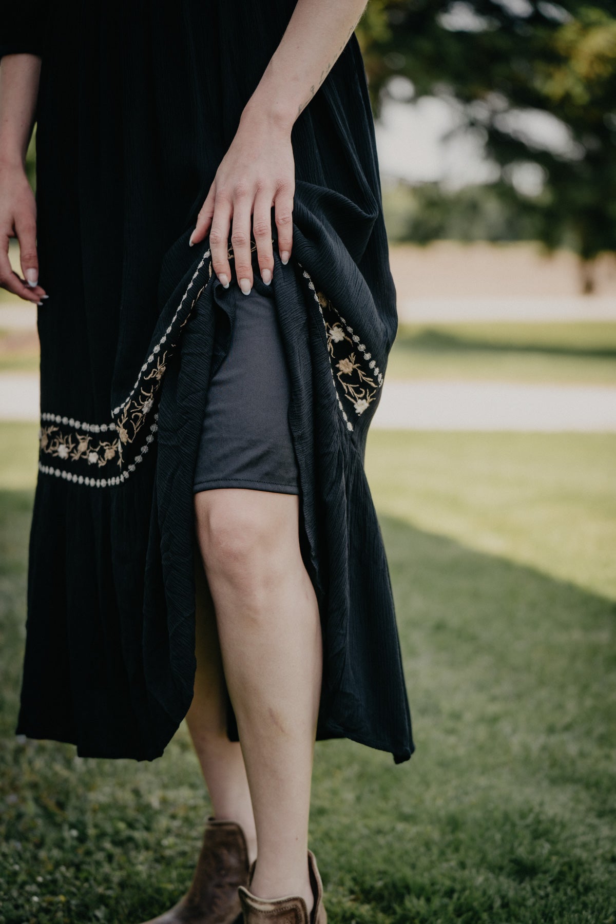 - Maxi length (midi on Grace who is 5'10")