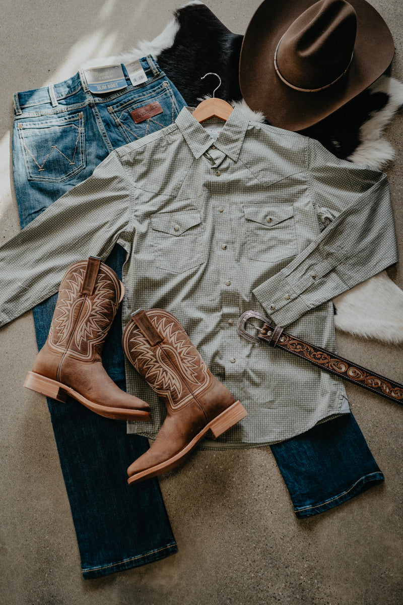 This Wrangler 20X pearl snap shirt features a striking sage green geometric pattern that pairs perfectly with your favorite jeans! The full pearl snap front makes dressing up effortless, while dual chest pockets keep essentials within reach. Topped with the iconic Wrangler logo embroidered on the chest pocket, this versatile piece delivers authentic Western flair with modern edge!