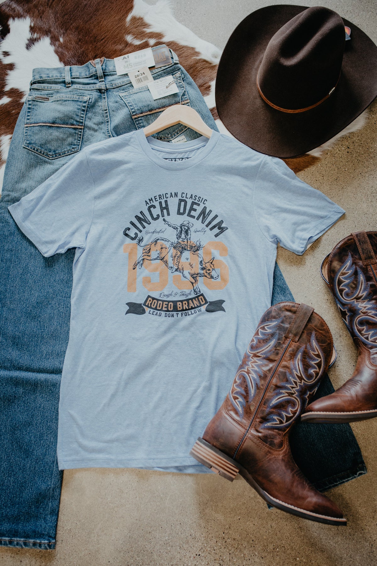 There’s nothing like a classic tee – especially in that timeless light blue from CINCH. Whether you're throwing it on solo or layering it under a jacket or flannel, this tee’s ready to go wherever you do. Featuring a Bull Rider graphic and the signature CINCH logo, it delivers comfort and Western style you can count on.