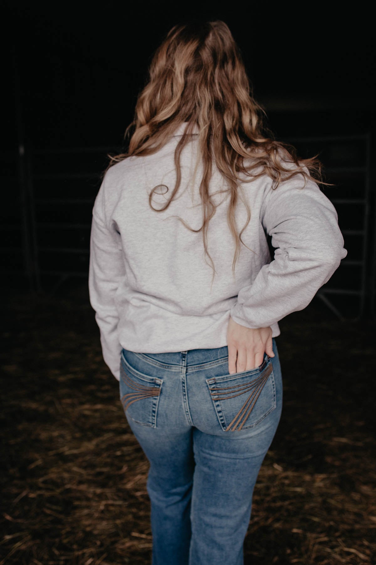 We absolutely love our Dojos around here and had to bring in another super buttery soft 7FMK Dojo trouser style for you! These new blue medium wash trousers are so comfortable and stretchy, they don't even feel like jeans, trust us on this one... we live in these! Such impeccable quality, style and flattering fit, these Dojos will be a favourite. The Dojo style is a medium-high waisted flare with cuff, with a slimming fit through the bum and thighs. The standard 34.5" inseam on these are perfect for everyday wear, dressing up with booties, to wear in the saddle and everything in between.