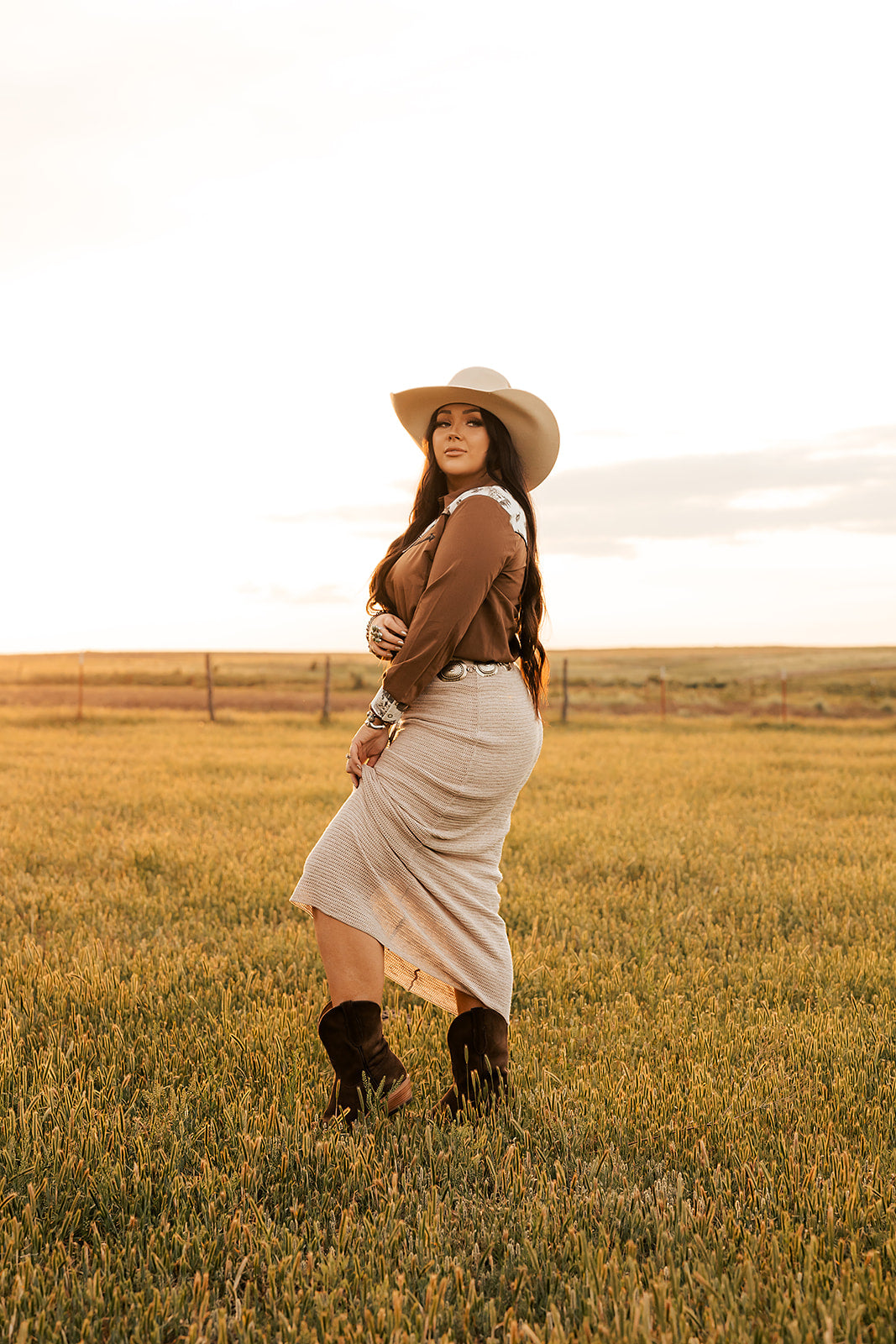 'Mykonos' Midi Oatmeal Heather Skirt (M Only)