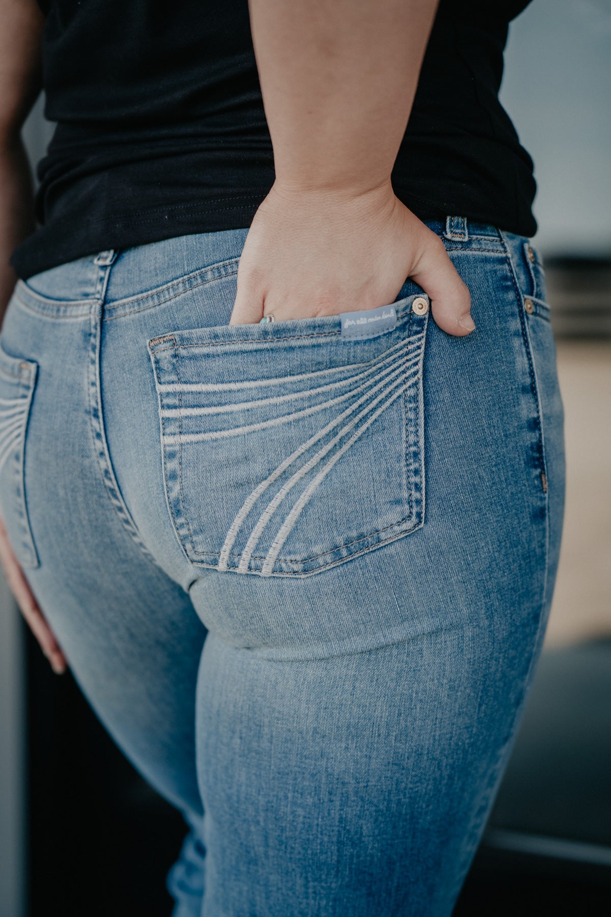 Sizing Tips: Sizing runs true for waist size. Sarah is shown wearing her true size 29 comfortably with nice stretch. Do keep in mind we found the inseam ran a little shorter than normal - Sarah is 5'3" and denim inseam was measuring at 31").