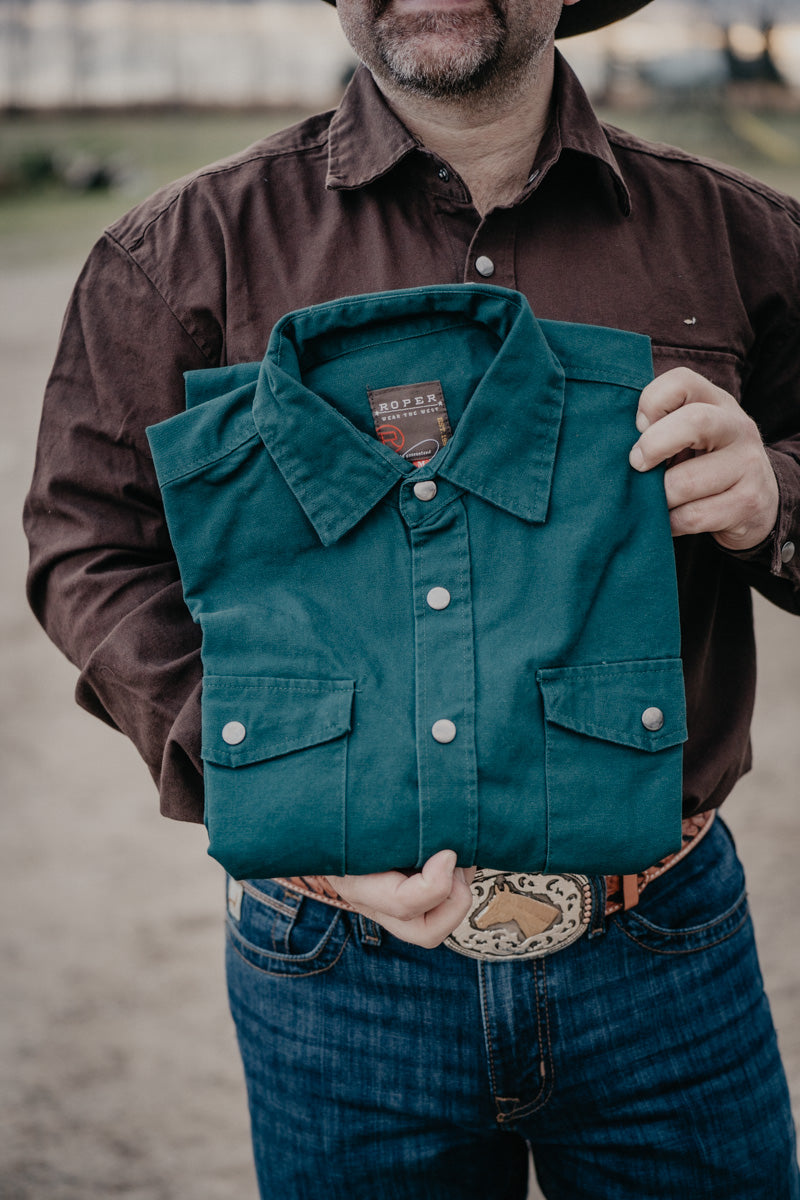 Rock that rugged Western vibe with this brushed twill roper shirt—tough enough for whatever adventure calls! The heavy-duty fabric keeps its shape through work and play, while the convenient snap closure means you're ready to go in seconds. It's the perfect grab-and-go piece for anyone who lives life on their own terms!
