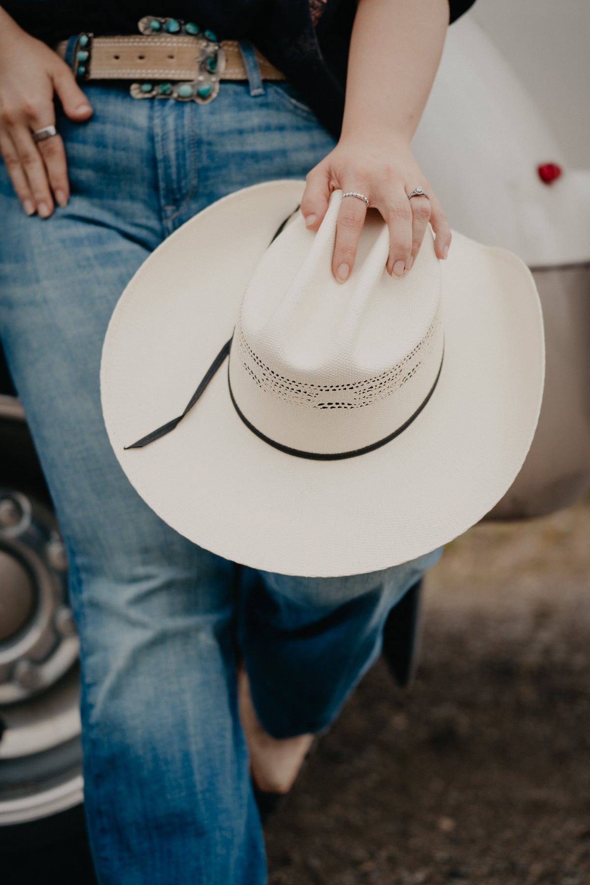 Get ready to conquer any challenge with the Denison 7X Straw Cowboy Hat from Resistol! Boldly crafted with 7X quality, a 4" brim, and a Cattleman crown, this hat is essential for any adventure. With its Bangora straw and all-around venting, it offers both comfort and daring style.
