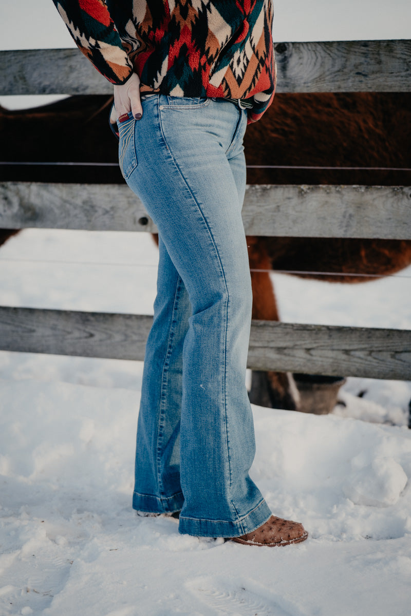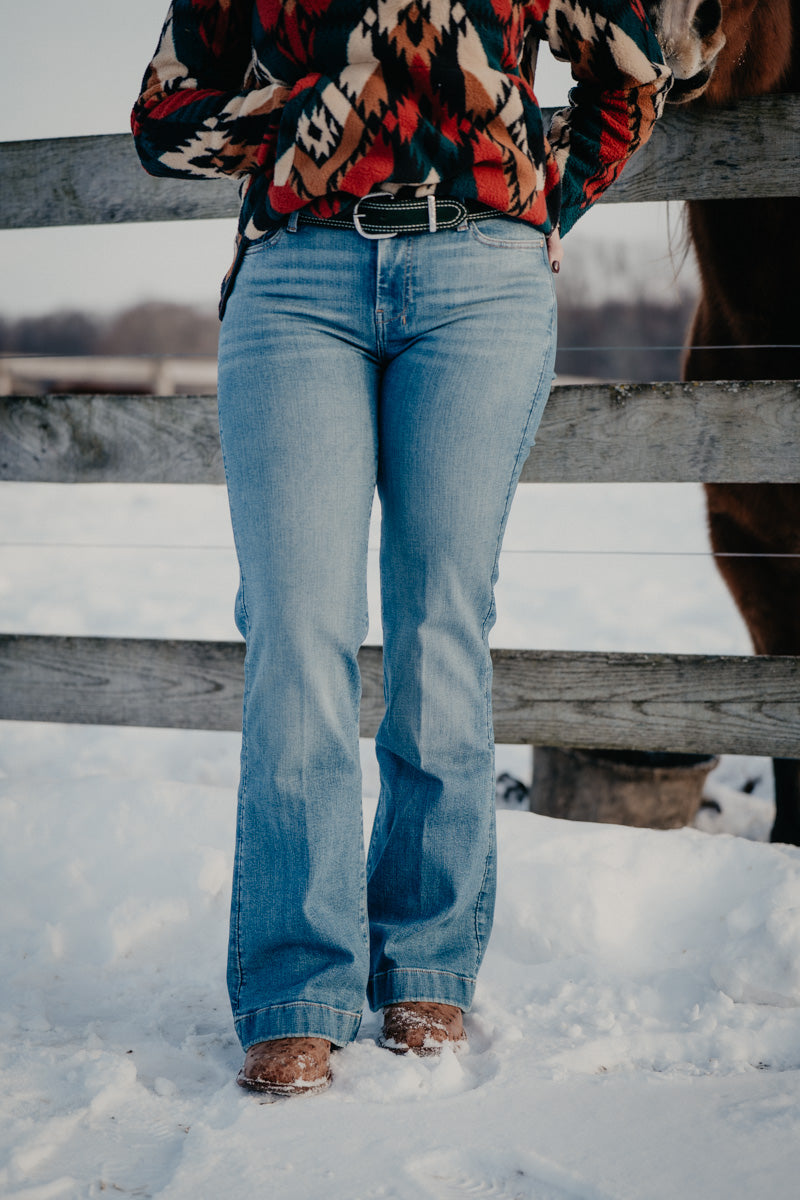 Featuring the perfect rise waist fit, slim thigh and trouser flare. This is a classic retro fit that will never go out of style!