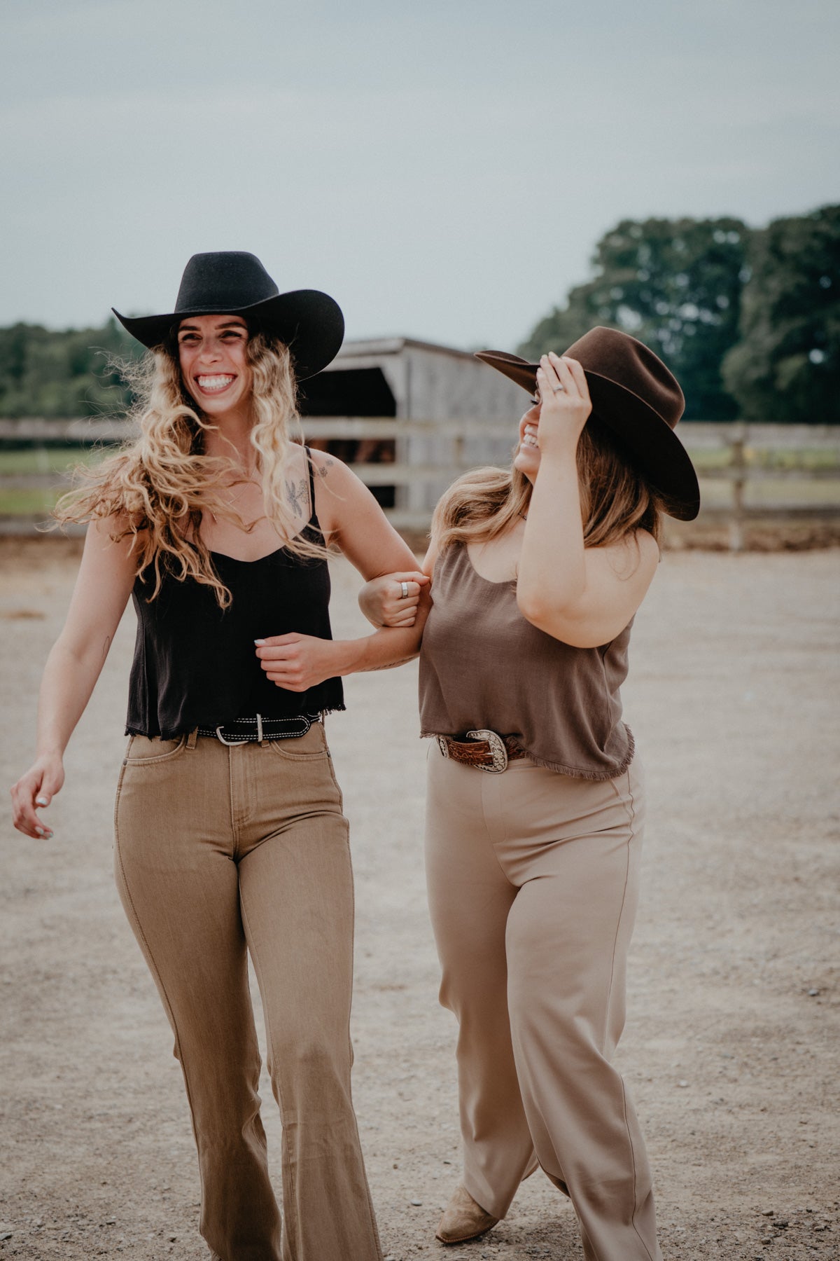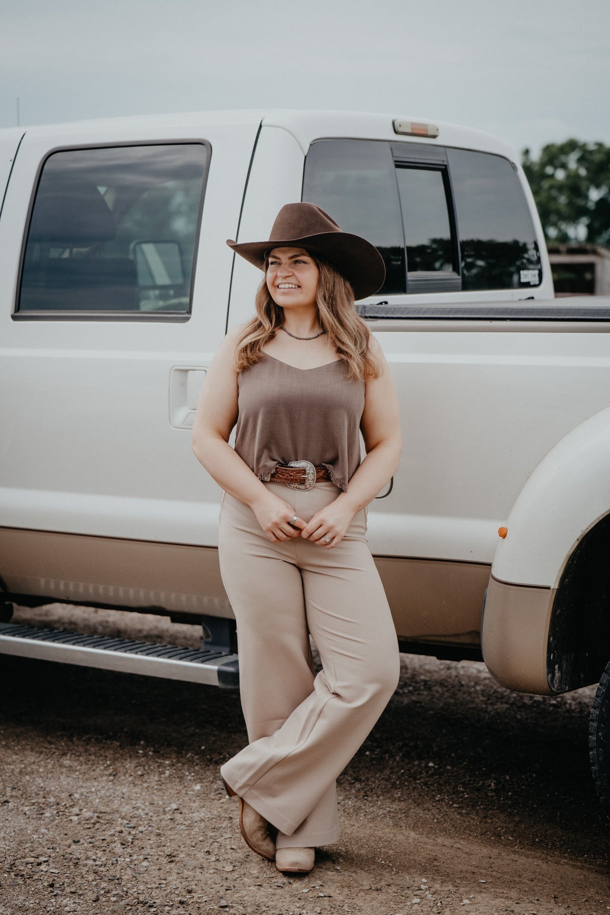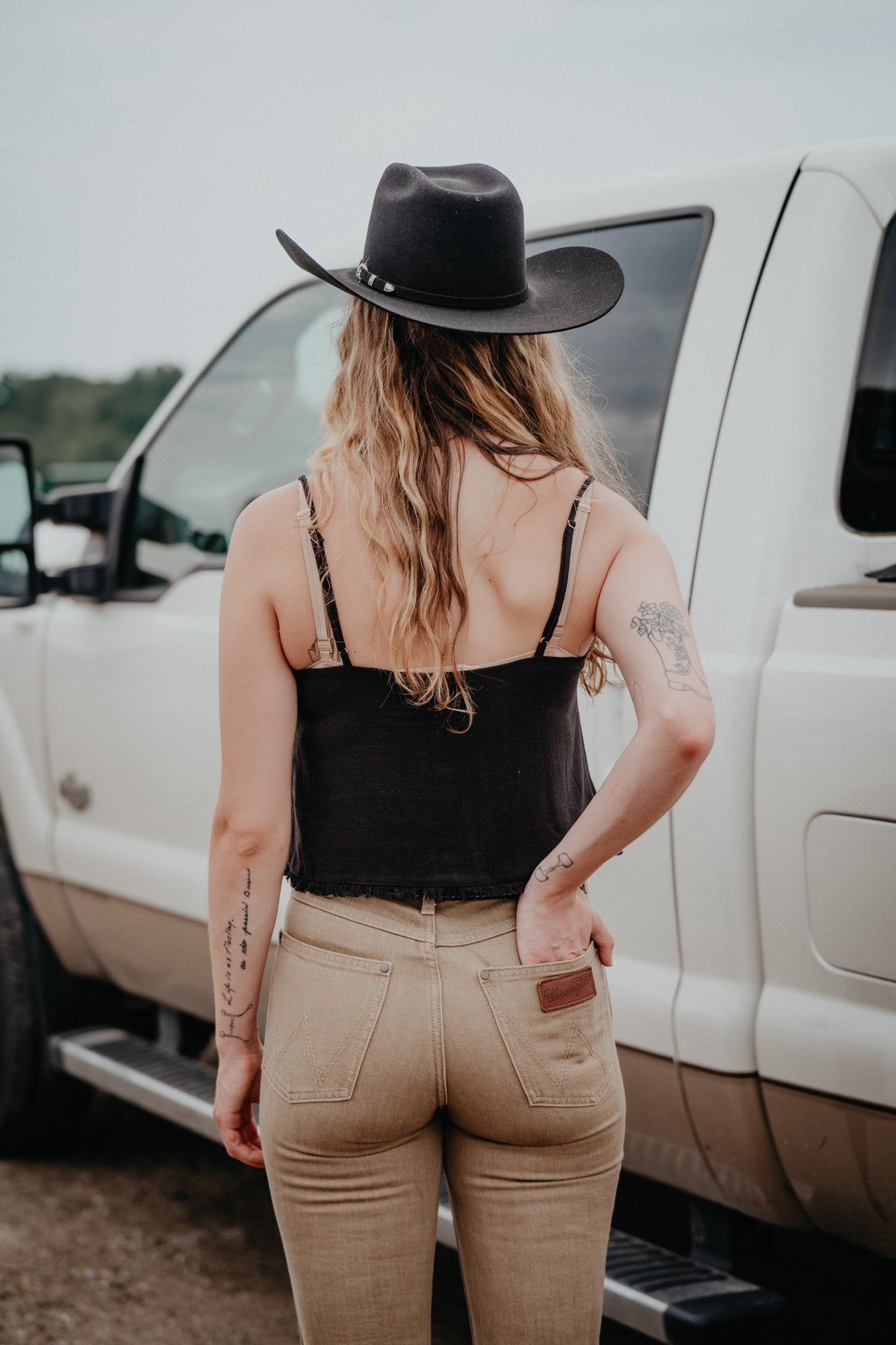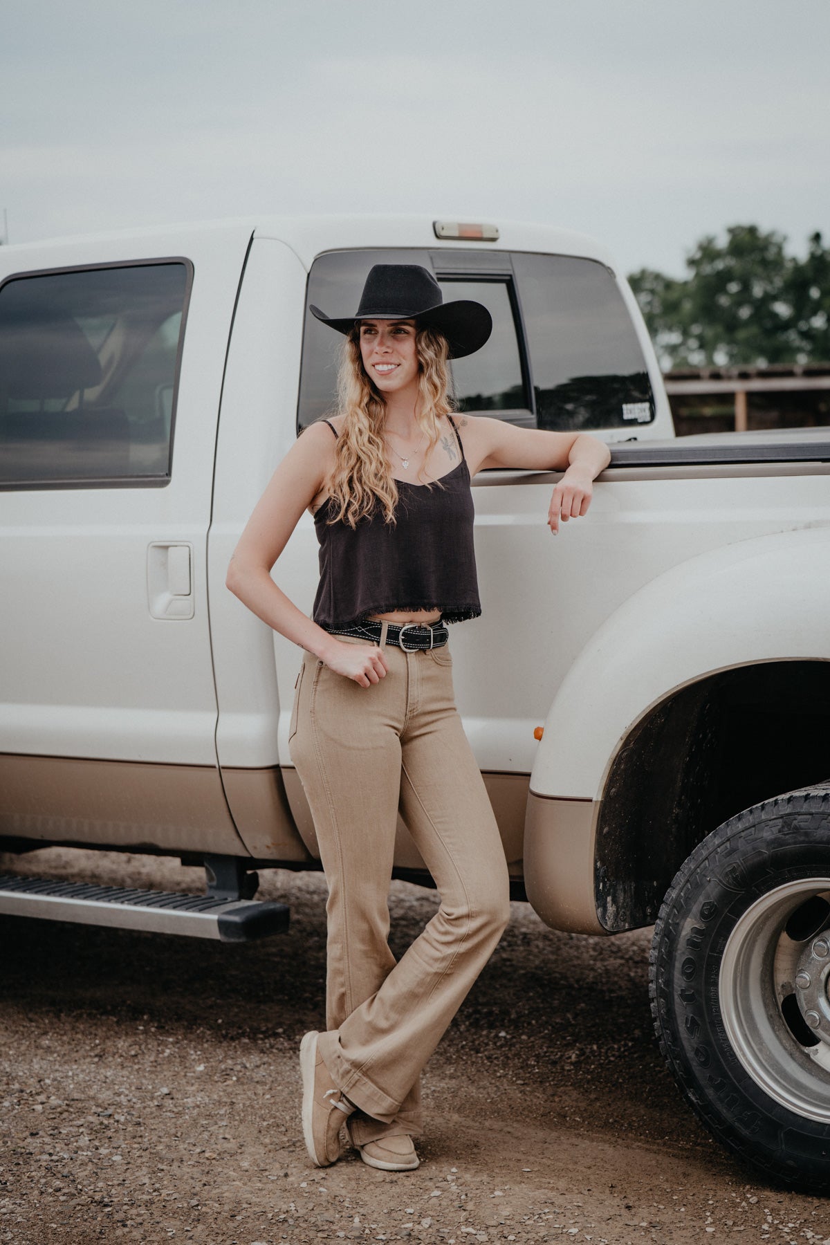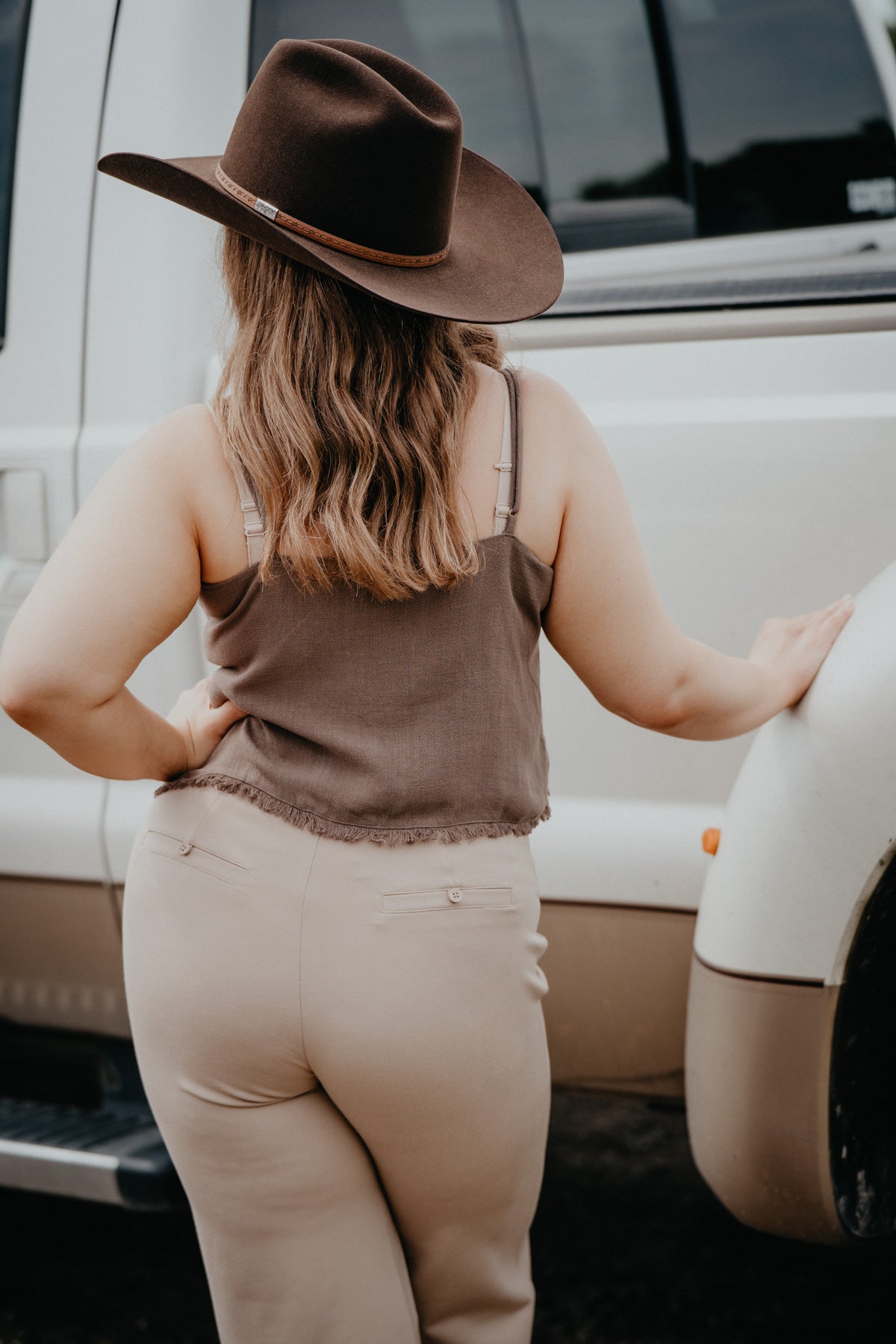 Grace has this paired with 'Emmie' Wrangler Tan High Rise Trouser.
