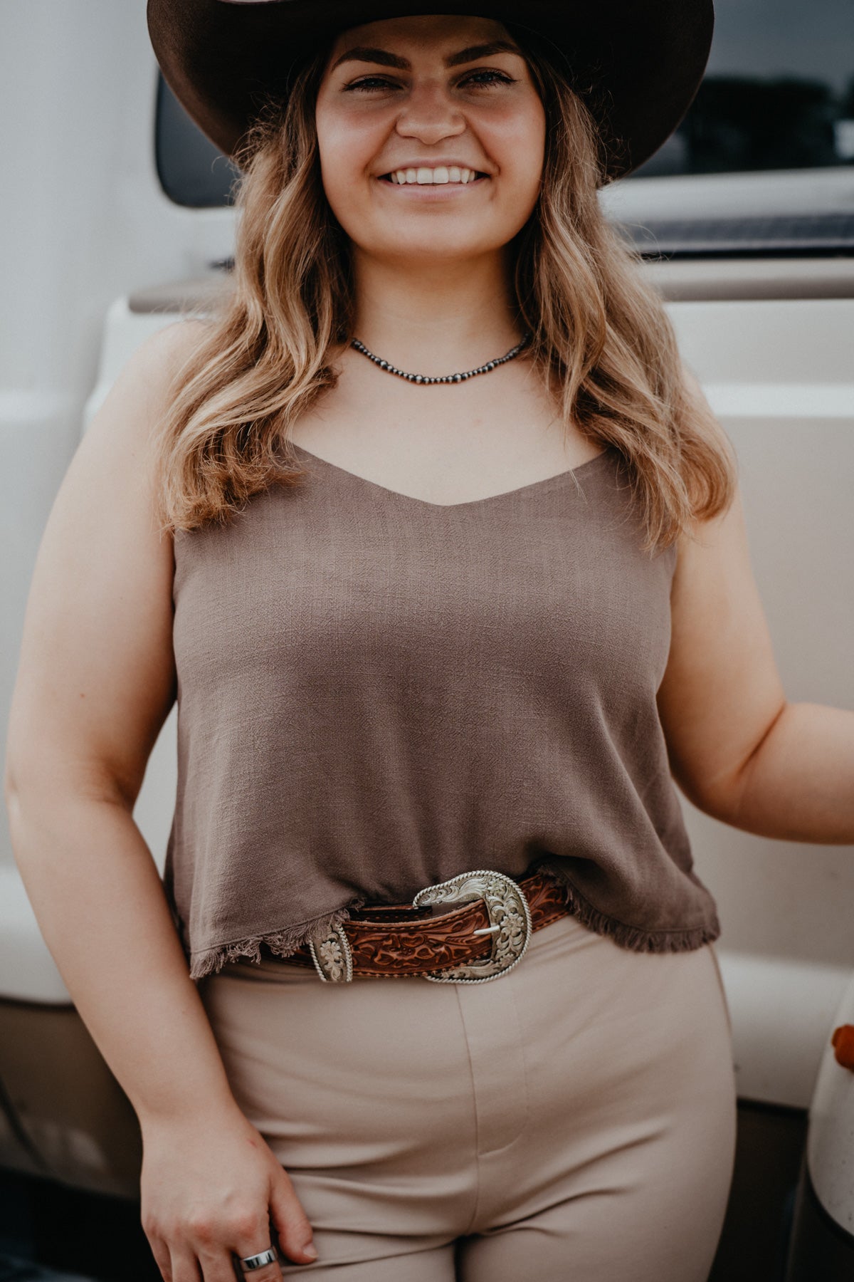 This linen tank is an effortless grab and go piece! With its relaxed V-neck fit, adjustable spaghetti straps, and soft, airy feel. Cropped just right to pair with your favourite pair of jeans, whether you're dressing up or dressing down! This tank is available in two timeless neutral shades—it's the kind of top you'll want on repeat all summer long!