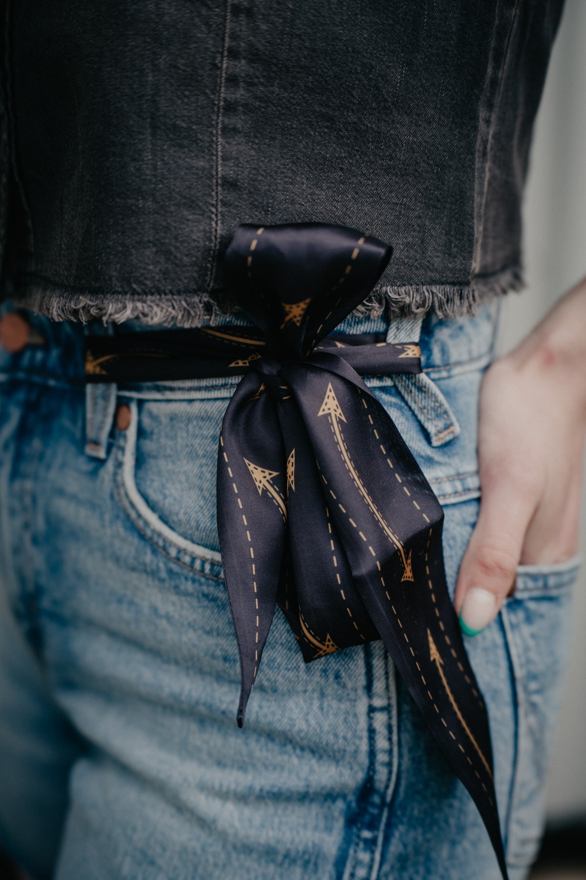 How-To Ideas: Add to your hair by tying it in a bow around your ponytail. Braid into your braids or use as a headband. Tie it on your favorite purse or wrap it around the handles. Wrap it around your wrist several times and add in your favorite bracelets. Wrap around your neck twice or tie in a bow. Simply drape it around your neck for that necklace look.